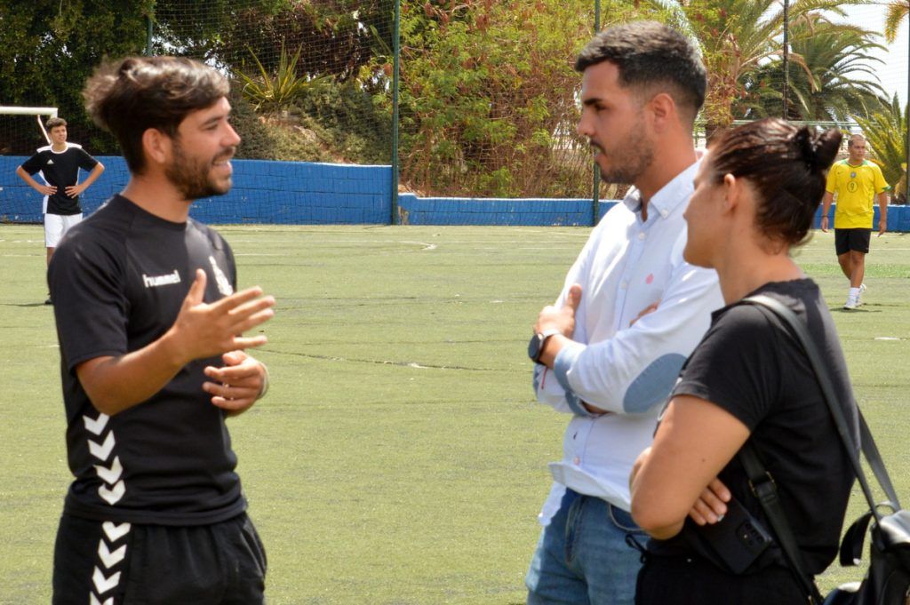 Cristhian Santana, informado de lo desarrollado en este campamento futbolístico, pudo observar los preparativos de una yincana que, tras la salutación del regidor de Deportes a los integrantes del mismo, realizarían por el entorno del Estadio El Hornillo.