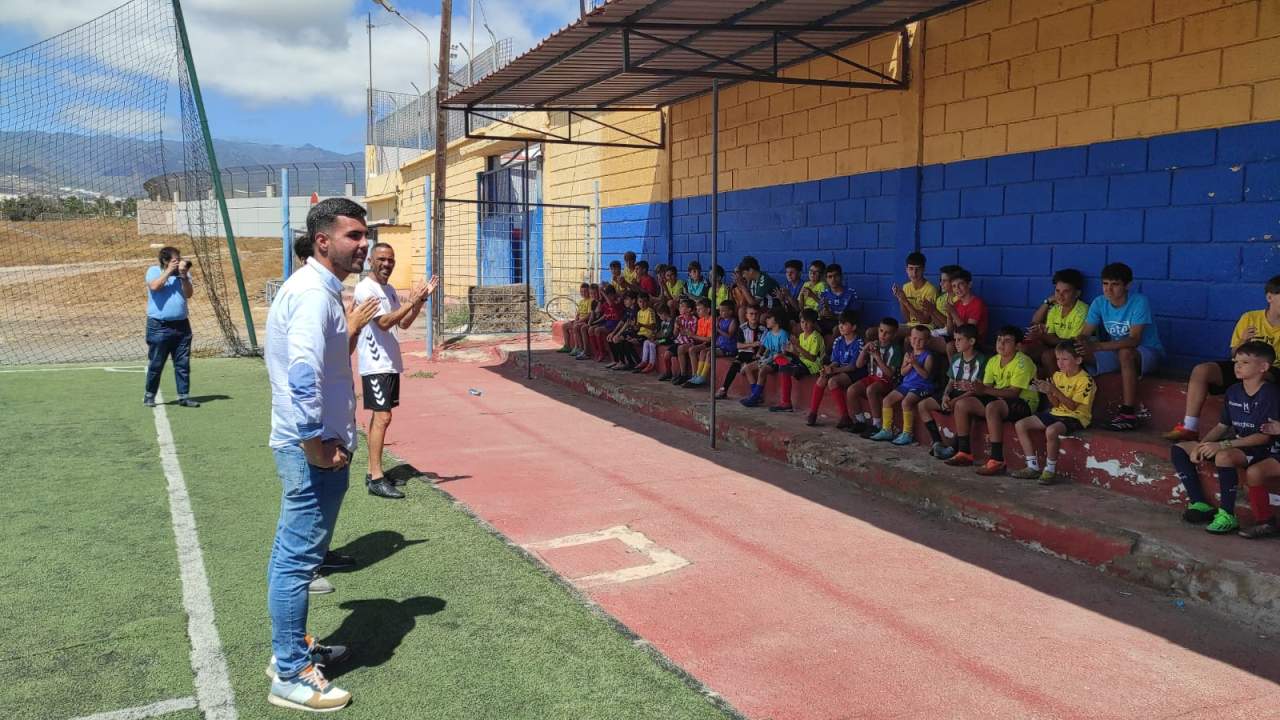 El concejal de Actividad Física y Deportes del Ayuntamiento de Telde, Cristhian Santana Caballero, en su gira por los diversos campus y jornadas deportivas que se viene desarrollando por el municipio, visitaba en la jornada de este jueves el campus, auspiciado por la UD Telde.