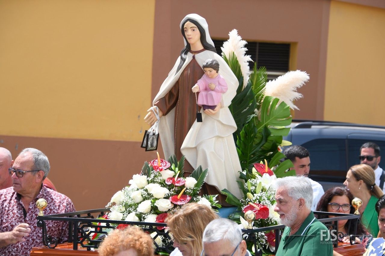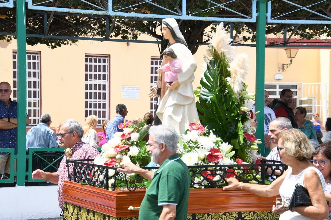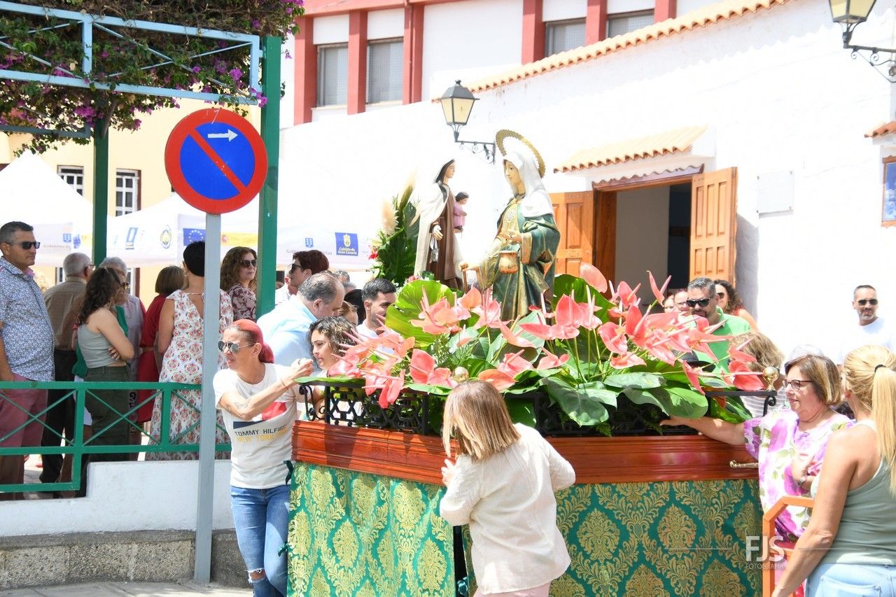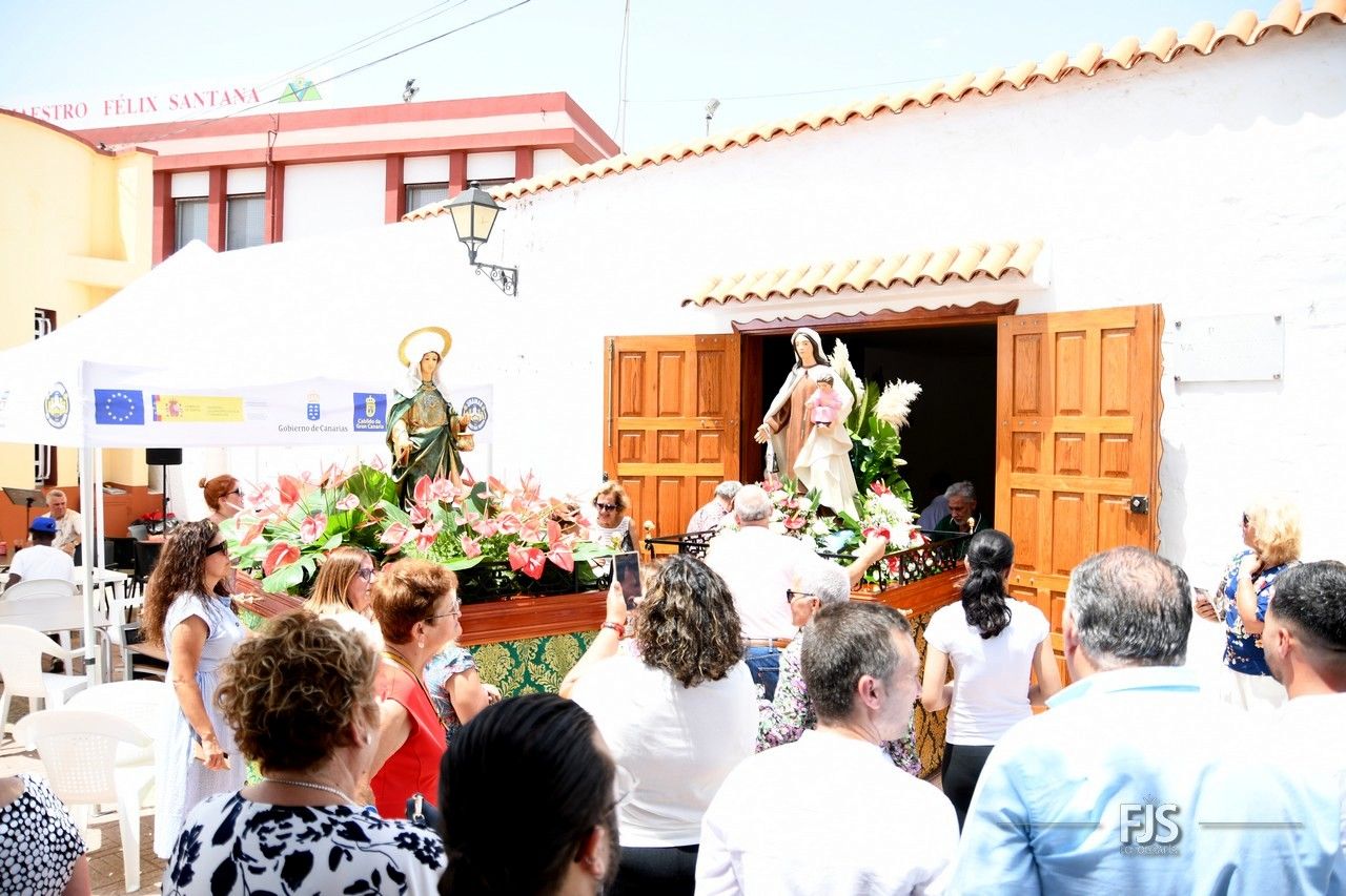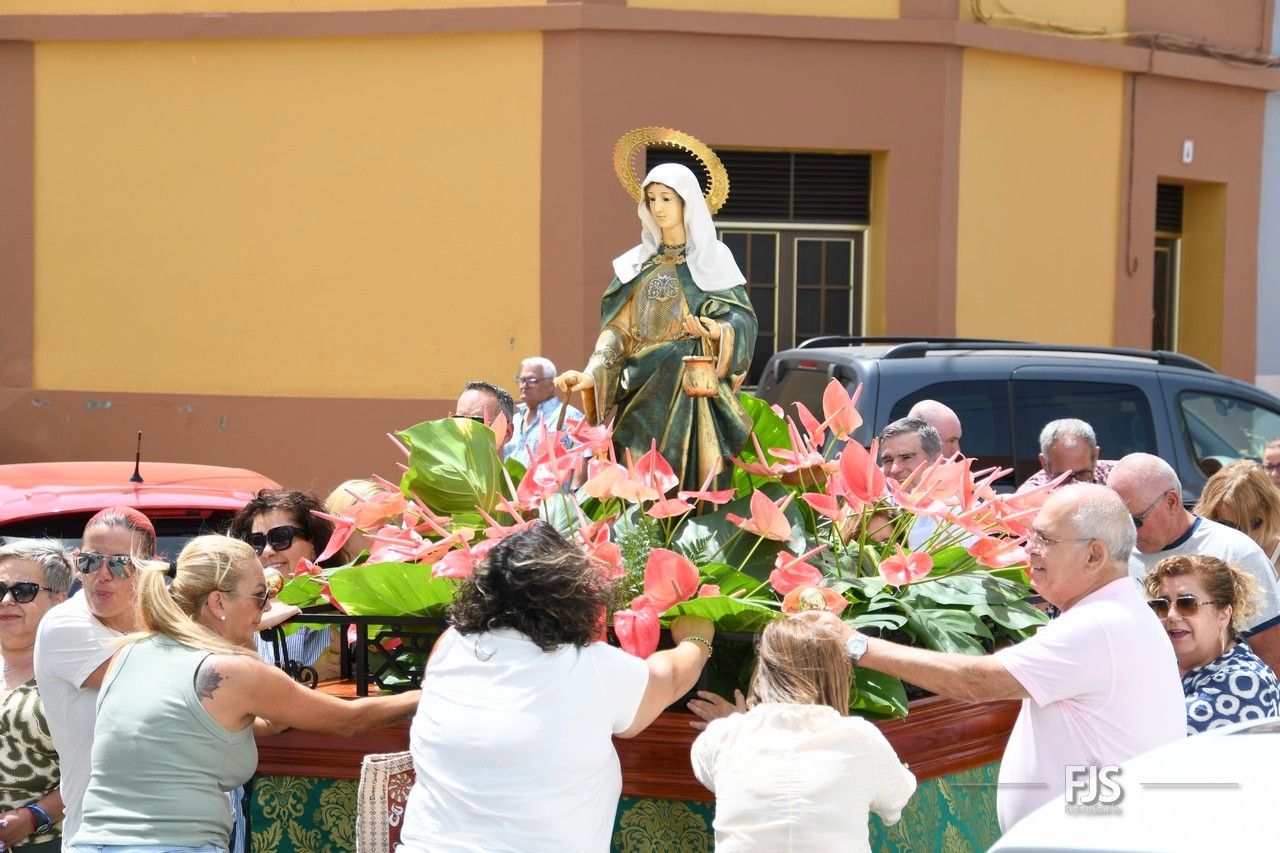 A partir de las 12.00 horas, en la plaza anexa al pequeño templo bajo la advocación de Santa Marta, se celebró la misa oficiada por el párroco Ricardo Marrero y, a su término, tuvo lugar la procesión de los tronos de la patrona y de la Virgen del Carmen por las calles del barrio, con el acompañamiento de fieles, Banda Municipal de Música y autoridades públicas, entre las que se encontraban los ediles Juan Martel, Adela Álvarez, Miguel Rodríguez, Cristhian Santana y Álvaro Monzón.