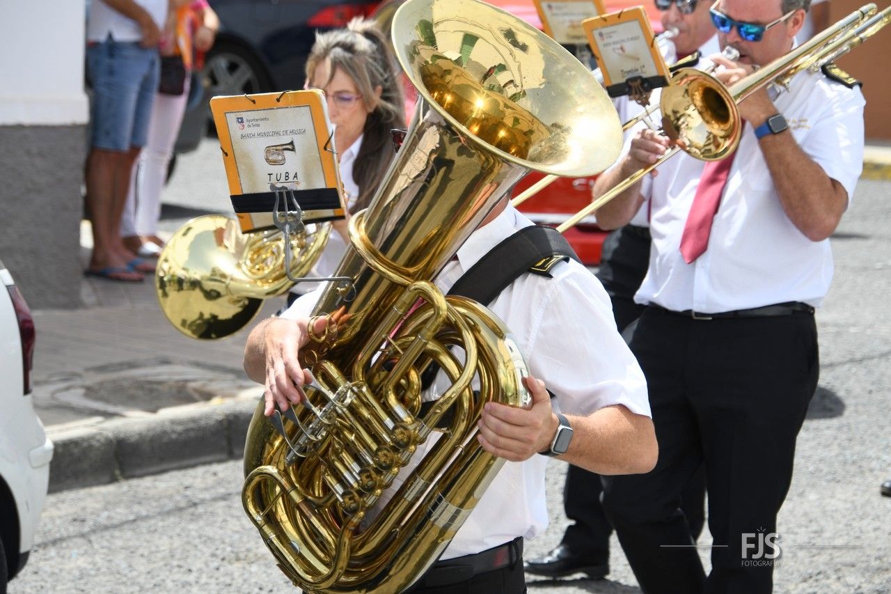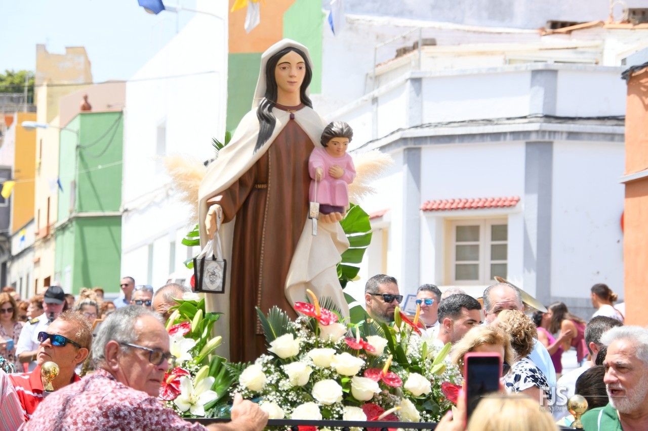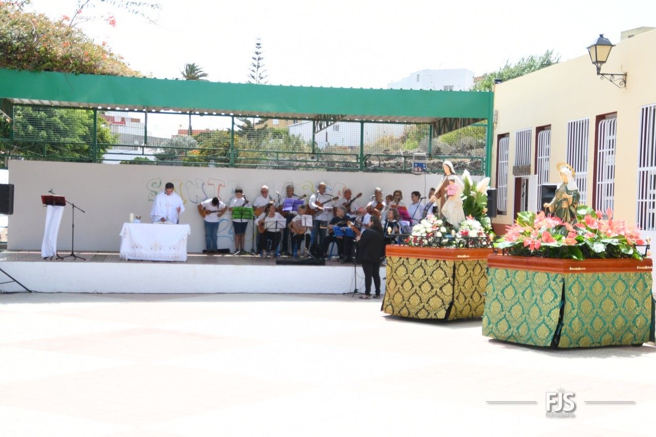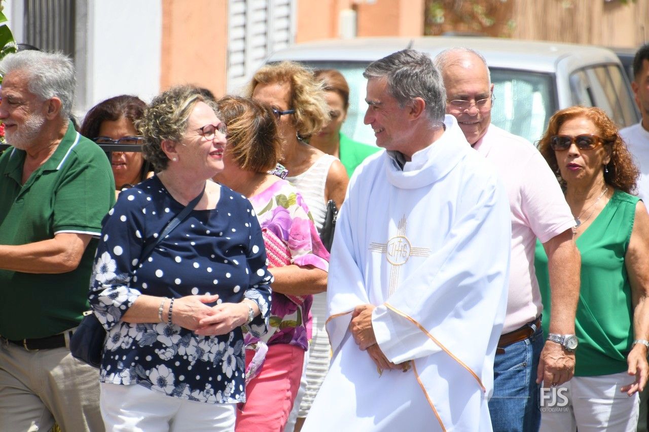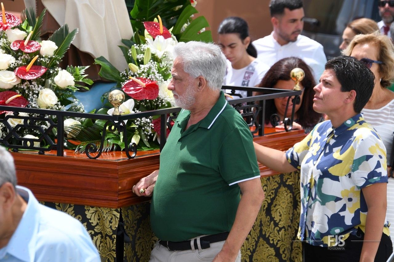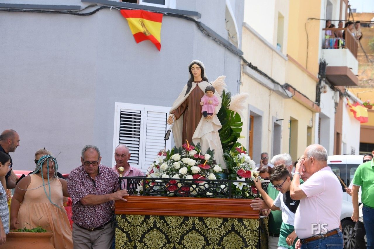 A partir de las 12.00 horas, en la plaza anexa al pequeño templo bajo la advocación de Santa Marta, se celebró la misa oficiada por el párroco Ricardo Marrero y, a su término, tuvo lugar la procesión de los tronos de la patrona y de la Virgen del Carmen por las calles del barrio, con el acompañamiento de fieles, Banda Municipal de Música y autoridades públicas, entre las que se encontraban los ediles Juan Martel, Adela Álvarez, Miguel Rodríguez, Cristhian Santana y Álvaro Monzón.