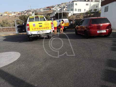Uno de los bañistas salió por sus propios medios, pero el otro fue llevado hasta el muelle de Taliarte por una moto acuática del servicio.