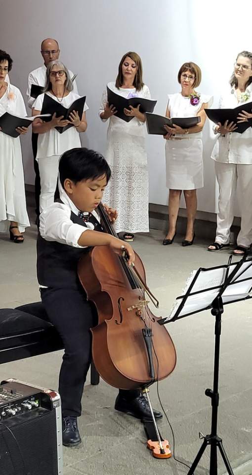 Con la actuación del joven grancanario de origen vietnamita, Bihnan Carlos Gil Silva, en colaboración y presentación con su violoncello en las composiciones May the road y Nube de hielo, con soltura y elegancia musical en presencia de su profesora Alba Mariana, acometió notas que dejaron su excelente preparación para continuar por futuros caminos de esta bella especialidad instrumental, el violoncello.