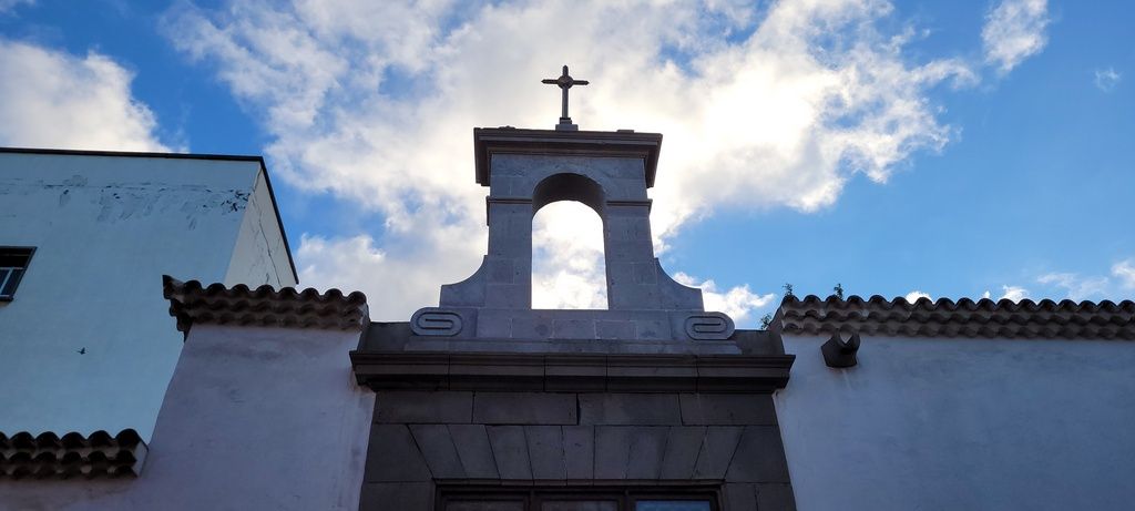 Edificación unida al patio del antiguo hospital por una puerta gótica que se abre en uno de los laterales, su fachada principal daba a una plazoleta orientada a poniente, posteriormente al imponerse el tránsito por la Calle Real, hoy Juan Carlos I, se traslada la puerta principal de acceso al naciente quedando la capilla en sentido inverso a su origen. Durante un largo período prestó servicios al centro de beneficencia pública hospital que protegiera con sus desvelos, piedad y generosidad, Inés Chemida o Chimida, hija de nativa canaria y de soldado portugués. Iglesia en la que se oficia misa hasta 1846 y en agosto de 1899 sufre un derrumbe. Las obras recientes de reconstrucción le devuelven sus líneas arquitectónicas gracias al proyecto del arquitecto Salvador Fábregas.