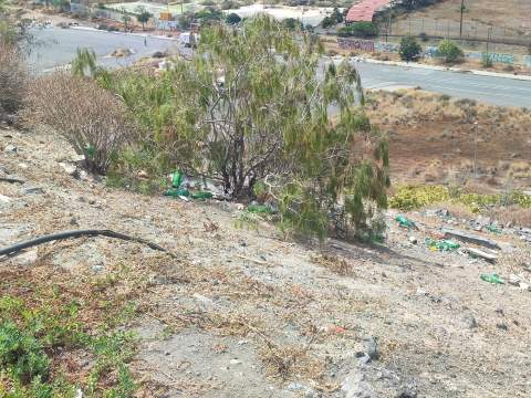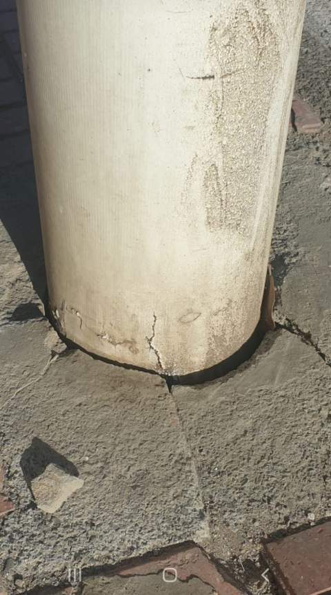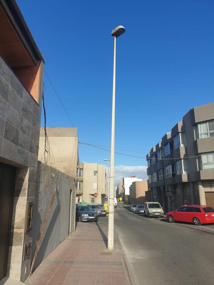 Vecinos del barrio de La Garita denuncian el mal estado de una farola ubicada en la calle Pascua, a la altura del número 35, que corre riesgo de caerse debido a que el suelo de la base está agrietado.