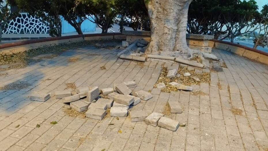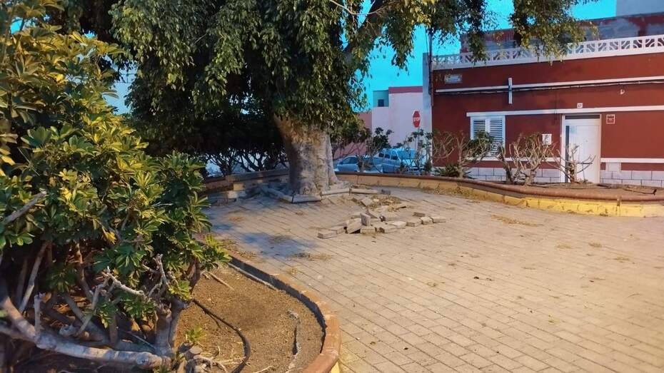 Los vecinos de Lomo Bristol se quejan del lamentable estado que presenta la plaza Titi Juana, con grietas en el suelo y muros por culpa de las raíces de los árboles, además de ladrillos sueltos.