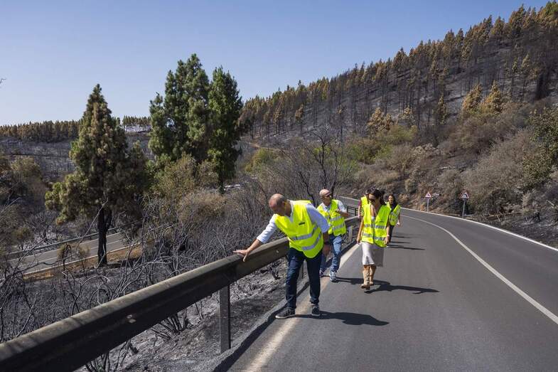 El incendio forestal ha ocasionado numerosos y cuantiosos daños materiales en elementos funcionales de la infraestructura viaria de la red de carreteras titularidad del Cabildo de Gran Canaria y el estado que presentan las vías afectadas “supone una situación de peligro para los usuarios, tanto a la circulación rodada como para los peatones, por este motivo vamos a actuar de emergencia para arreglar todos los daños que hemos cifrado en unos 600.000 euros y que vuelvan a estar en condiciones óptimas en 6 meses”, ha subrayado Augusto Hidalgo.
