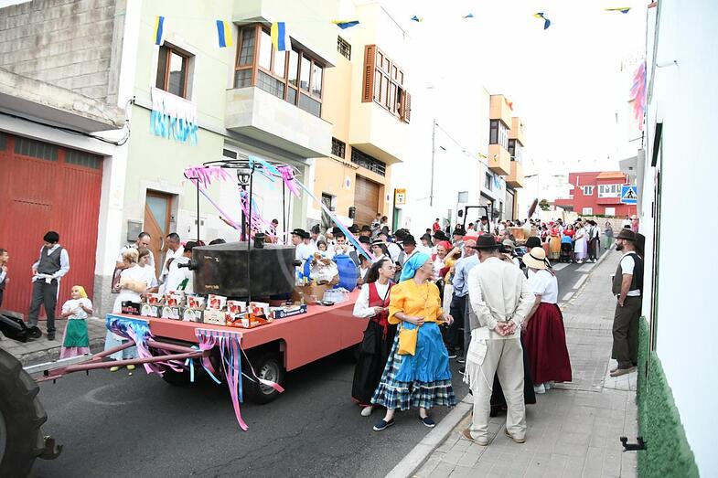 El popular desfile, en el que participaron cientos de vecinos de Lomo Magullo y los núcleos próximos de La Breña, Arenales, Tecén, Cazadores, etcétera, con el concurso de tres carretas y cuatro agrupaciones folclóricos que animaron el recorrido con sus cánticos y bailes. Entre los asistentes se encontraban el concejal del Gobierno de Telde y responsable del Distrito Cumbre,, Juan Martel; el presidente del Patronato de Fiestas El Naciente, Salvador Santana, miembros de la comisión organizadora de estos festejos.