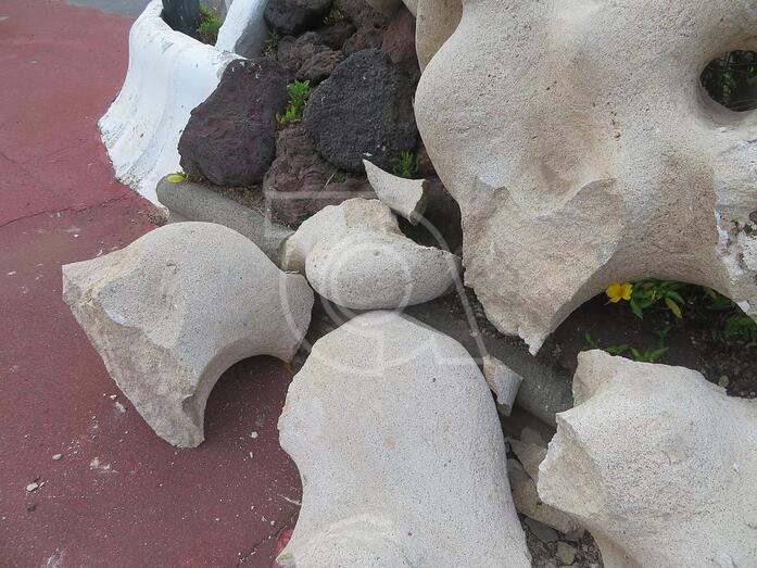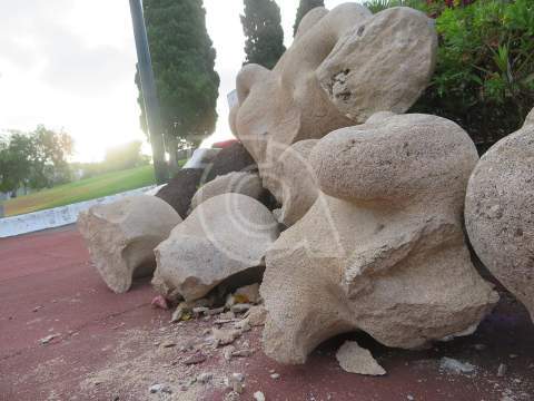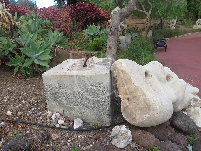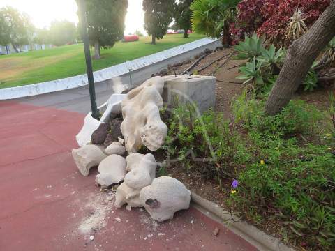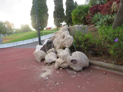 La obra de arenisca fue abatida desde su pedestal y al golpearse contra el suelo se fragmentó sufriendo daños importantes.