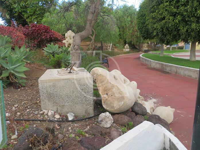 El vandalismo se cebó este viernes por la tarde con una de las piezas del conjunto histórico del artista teldense Plácido Fleitas (1915-1972) que se encuentra en un espacio abierto ajardinado del parque urbano de San Juan, a pocos metros de la puerta de acceso desde la rotonda del Pebetero, en la confluencia de las calles de Profesor Lucas Arencibia Gil con Doctor Gumersindo Velázquez.