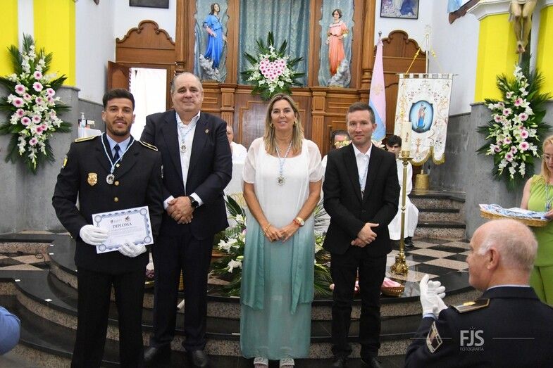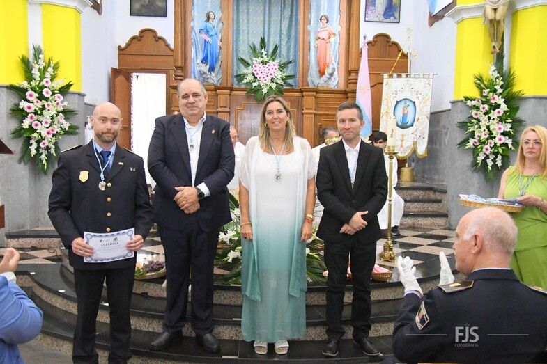 A todos los presentes, todos ellos miembros de la Policía Local, la Policía Nacional o la Guardia Civil, se les se hizo entrega de diplomas y medallas de la Virgen a cargo de los ediles María González Calderín, Juan Francisco Martel. Juan Pablo Rodríguez y Miguel Rodríguez Marchena, en un acto que contó con la presencia de la nueva directora del Área de Salud de Gran Canaria, la teldense Lidia Mejías.