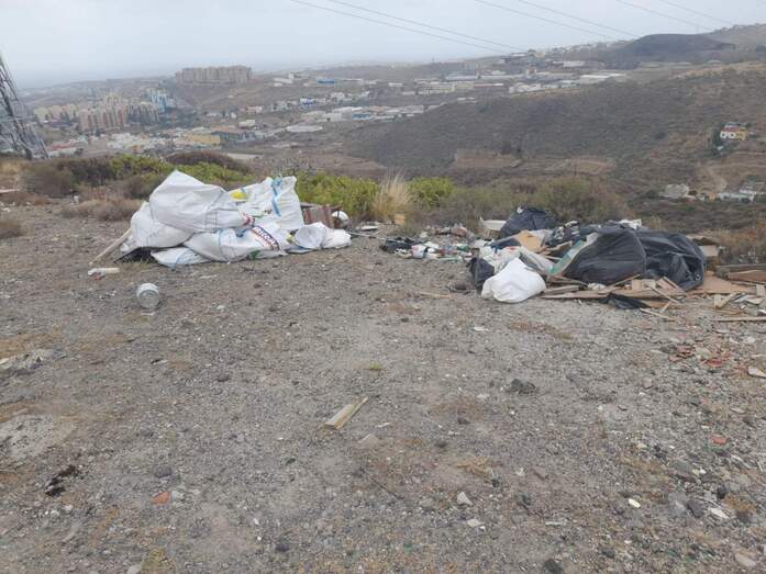 La Unidad de Medioambiente de la Policía Local de Telde, conocida como 'Policía Verde', ha identificado a los autores de un vertido ilegal en la entrada al barrio de Lomo Blanco. Además del expediente, los infractores tuvieron que retirar el material.