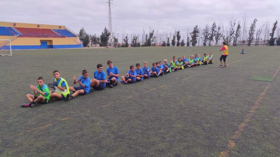 El campo municipal de Las Huesas acoge a 40 niños y niñas que participan en el campus de fútbol que la UD Las Huesas realiza desde el pasado 26 de junio y que concluirá el próximo día 18 de agosto. La iniciativa, que cumple su sexta edición, está orientada a participantes de entre 4 y 14 años, que han disfrutado de un verano plenamente deportivo.