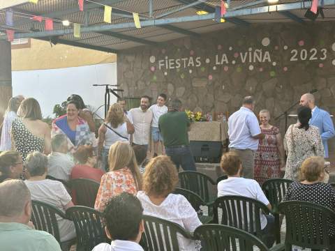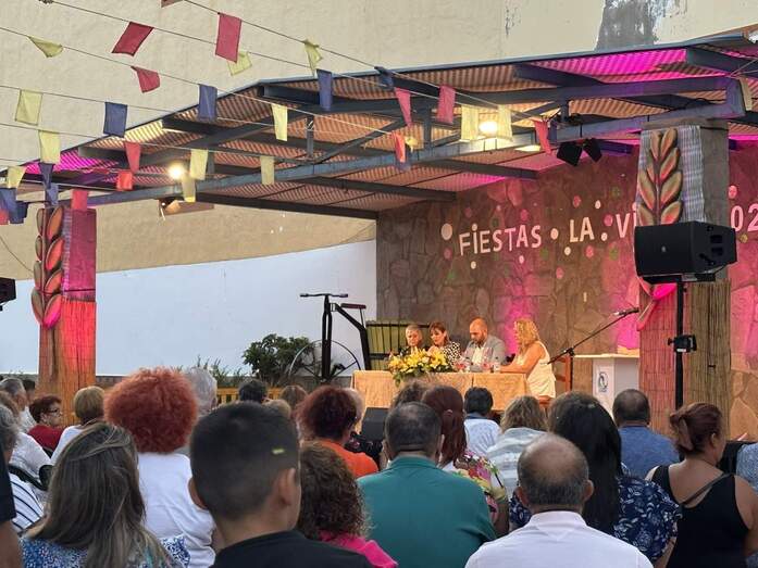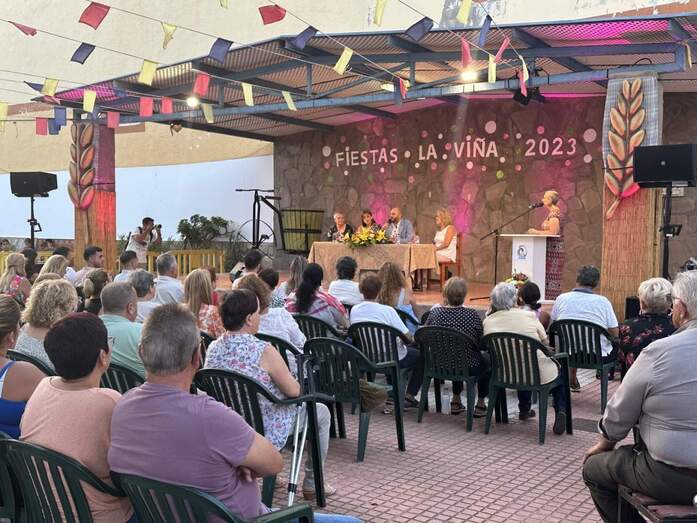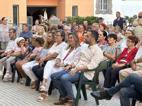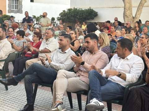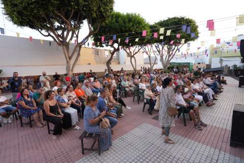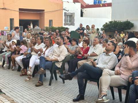 El acto, que estuvo presentado por Carmina Martínez, directora de Radio Las Tirajanas, contó con una nutrida presencia de vecinos y vecinas de este nucleo poblacional, así como del alcalde de Telde, Juan Antonio Peña, y diferentes concejales de la Corporación, que arroparon a la pregonera y al presidente de la asociación, Estiben Bolaños.