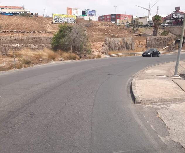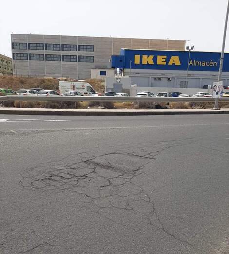 Los conductores se quejan del mal estado del firme de las vías de entrada y salida al polígono de Salinetas, a la altura del antiguo Ikea, que enlazan con la GC-1.