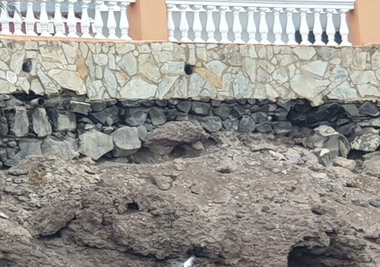 Alertan del peligro de estos derrumbes de la base del muro sobre el que se aseintan el paseo que caen sobre los riscos próximos al antiguo espigón del muelle de Melenara.