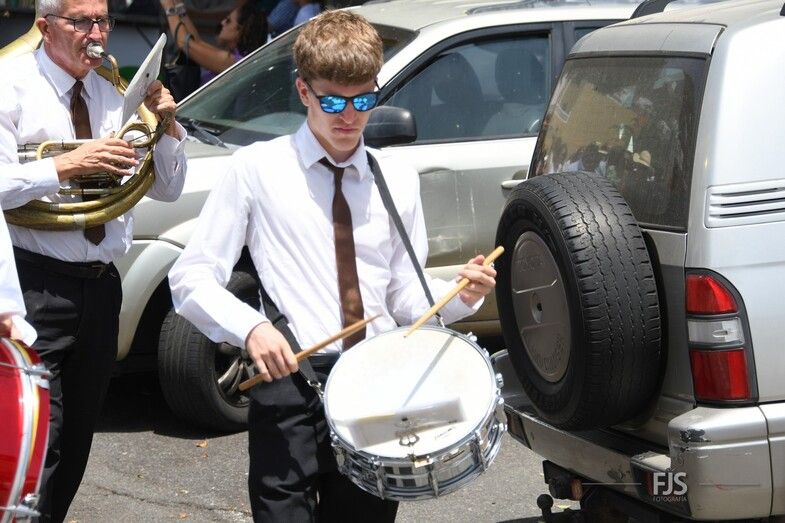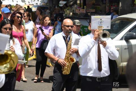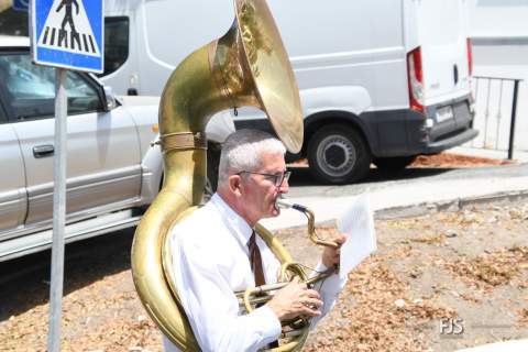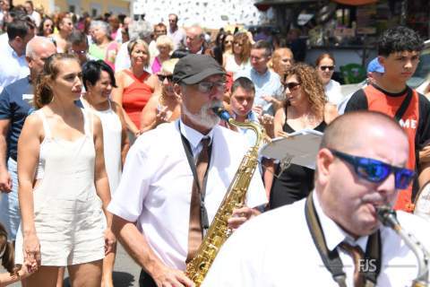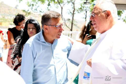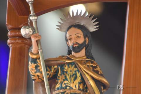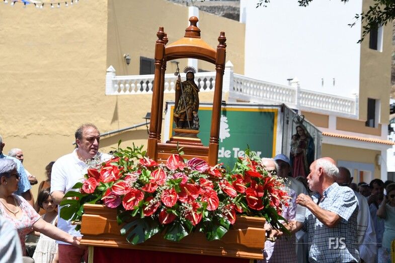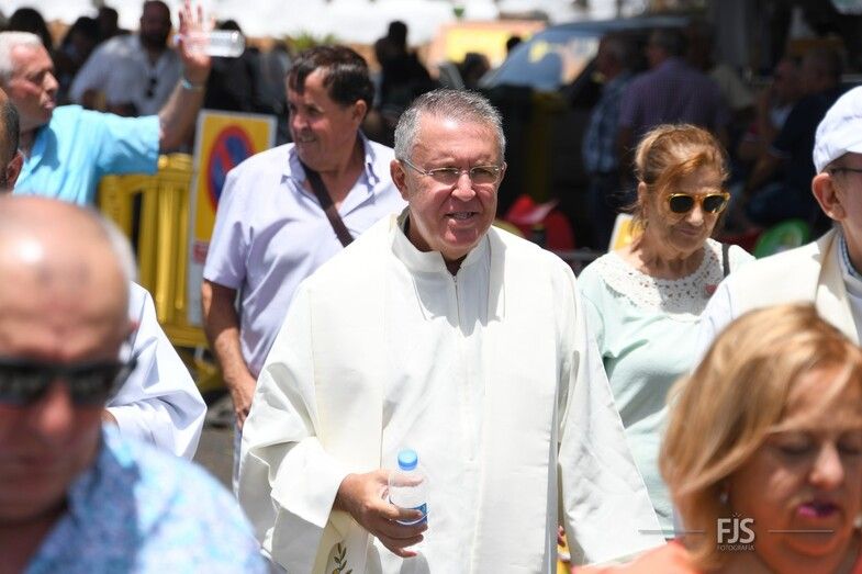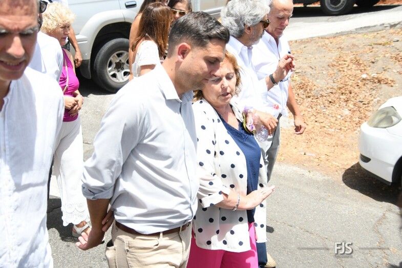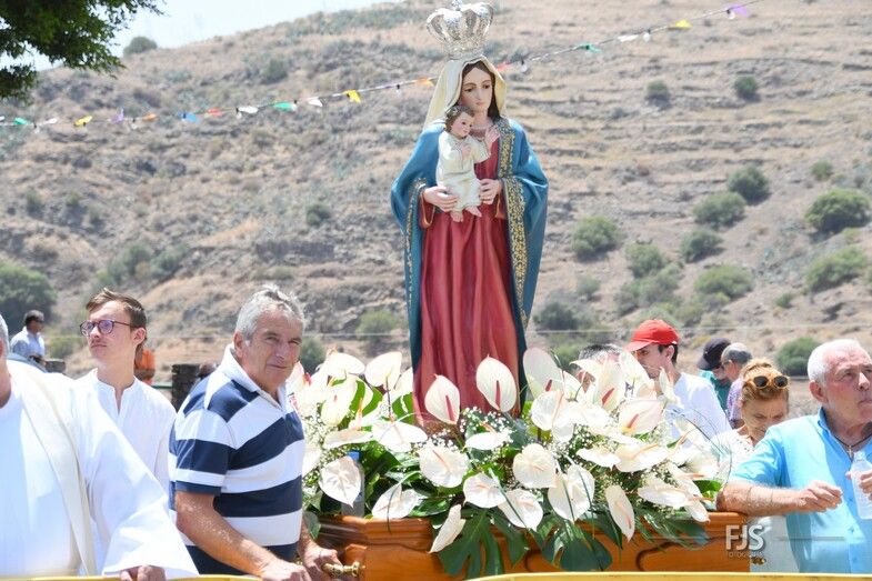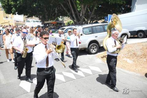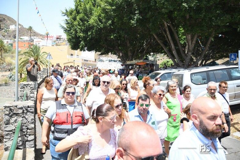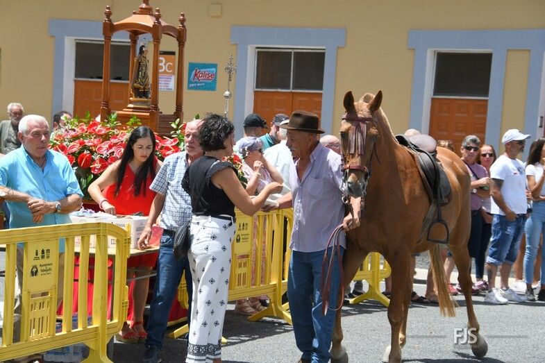Tras la eucaristía tuvo lugar, bajo un sol de justicia  y un calor sofocante, la procesión de los tronos de San Roque y la Virgen del Perpetuo Socorro por las inmediaciones del templo, un desfile amenizado por la Banda Isleña y que contó con el acompañamiento de fieles y autoridades de Valsequillo y Telde encabezadas por el alcalde del municipio colindante, Francisco Atta. Entre los asistentes se encontraba también la cronista oficial de Valsequillo, María Teresa Cabrera.