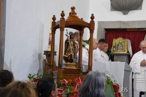 El  Valle de San Roque, limítrofe entre Telde y Valsequillo,  celebró este miércoles al mediodía el día principal de sus fiestas patronales con una feria de ganado y la misa cantada y acompañada por la Parranda del Vino que estuvo oficiada por el sacerdote Luis Laborda y concelebrada por varios párrocos del arciprestazgo de Telde-Valsequillo.