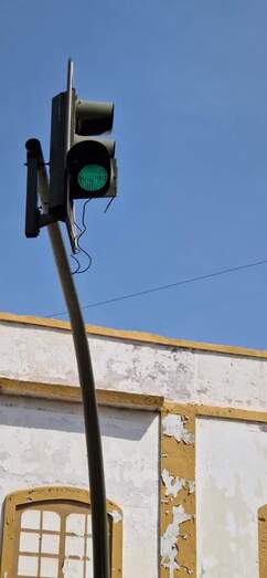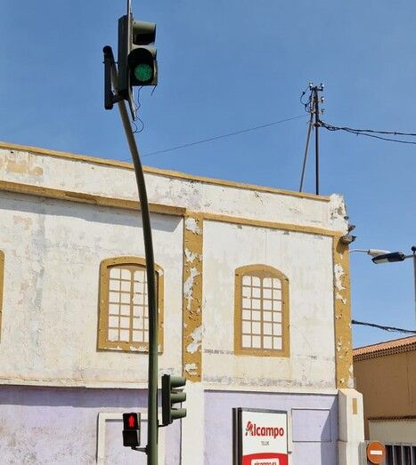 Vecinos de Telde se preguntan qué función tiene un semáforo en la Avenida del Cabildo para regular el paso de peatones, que está a 4 metros de altura y girado 90º grados al sentido de circulación. ¿Cómo saben los coches que tienen que parar? se cuestionan.