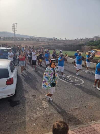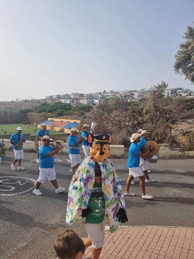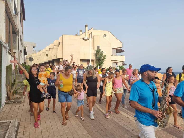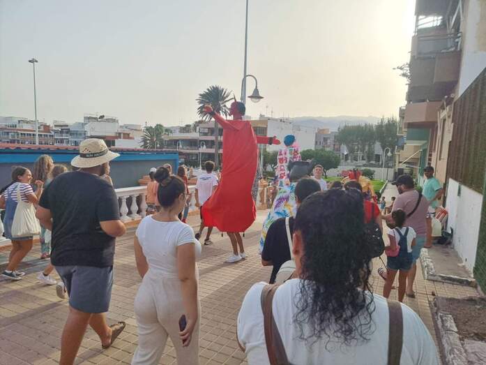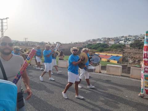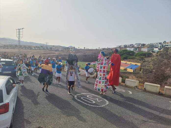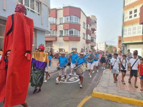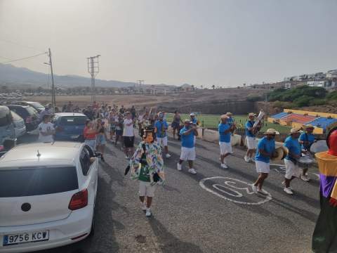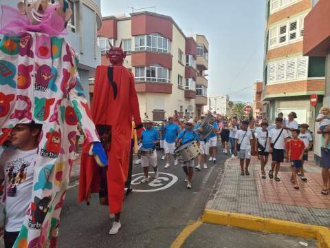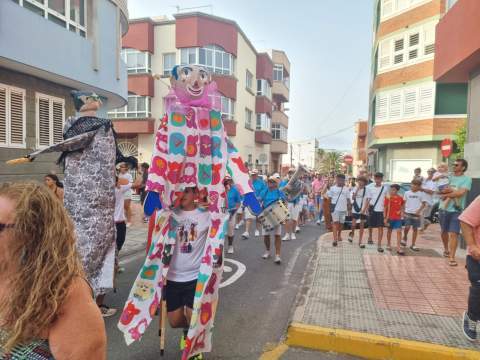 El pasacalle anunciador de las fiestas de Melenara ha llenado en la tarde de este viernes de música y alegría las calles de Taliarte, Melenara y Salinetas. La comitiva, que contaba con los papahuevos gentileza de la asociación de vecinos Las Olas de Playa del Hombre, arrancó desde la sede de Meclasa, en el edificio de Los Marinos, y ha recorrido diferentes puntos del litoral costero.