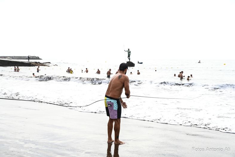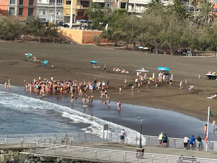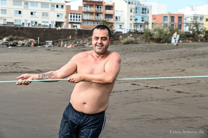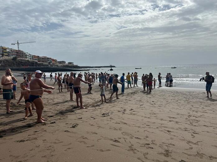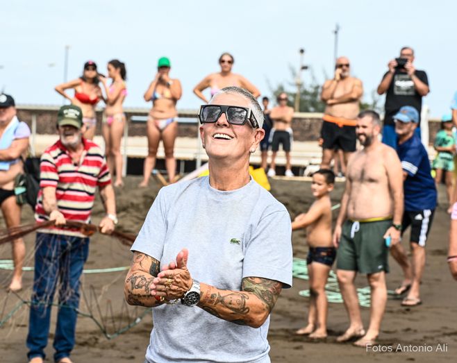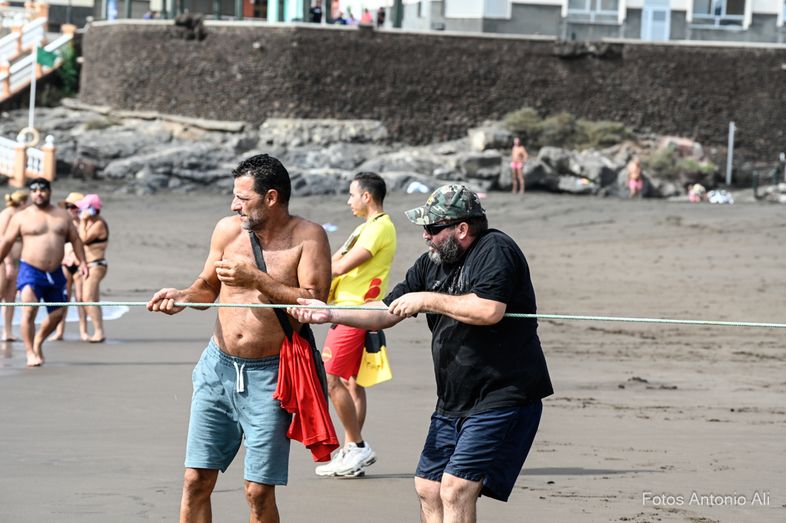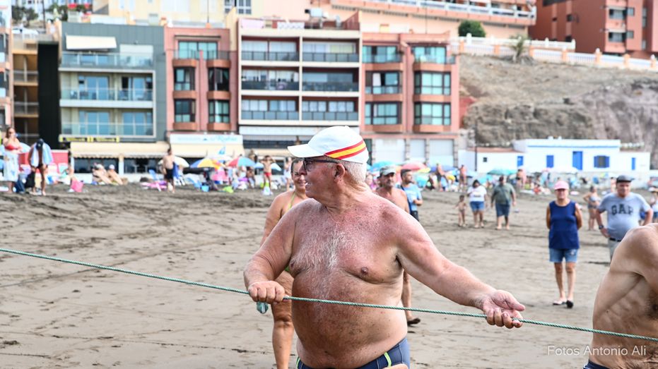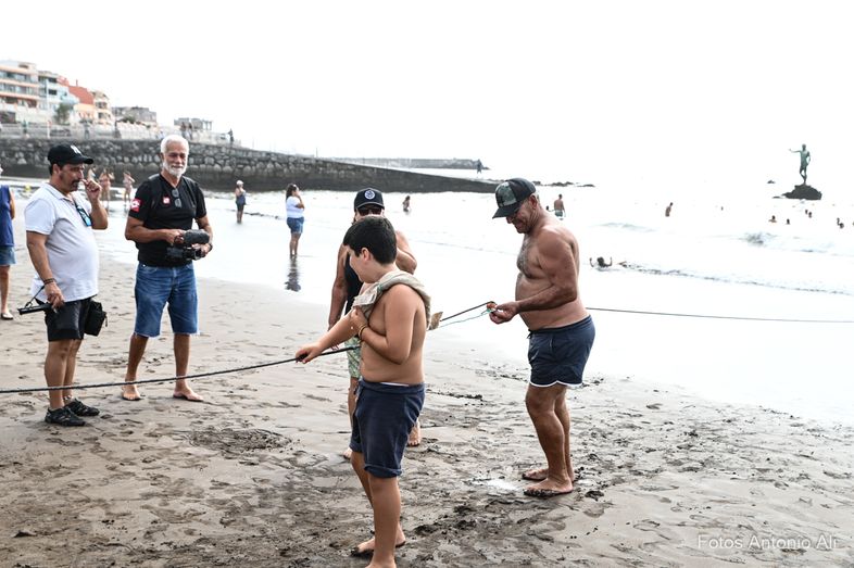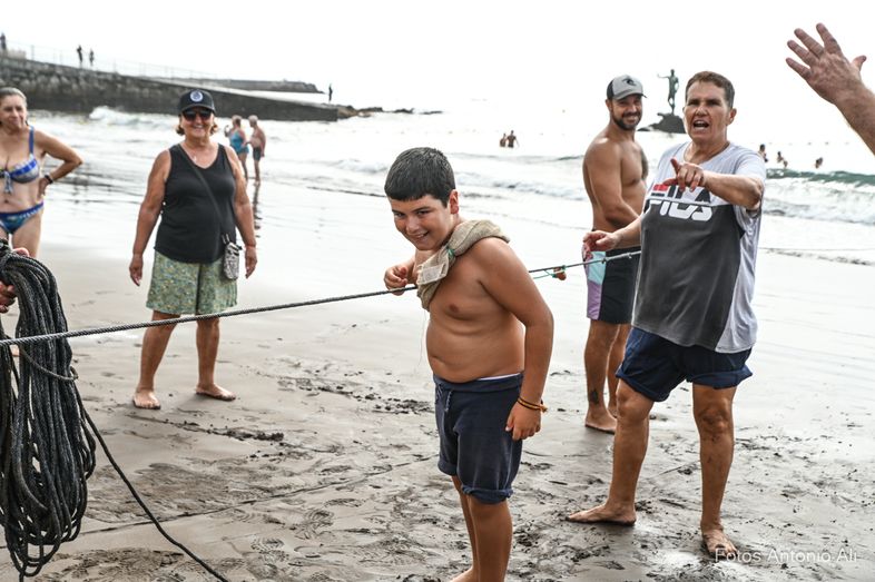 La calufa marcó este domingo la recreación del arte tradicional de pesca del chinchorro en la playa de Melenara, un acto propio de las fiestas patronales de este barrio de pescadores en honor del Santo Cura de Ars y de la Virgen del Carmen.