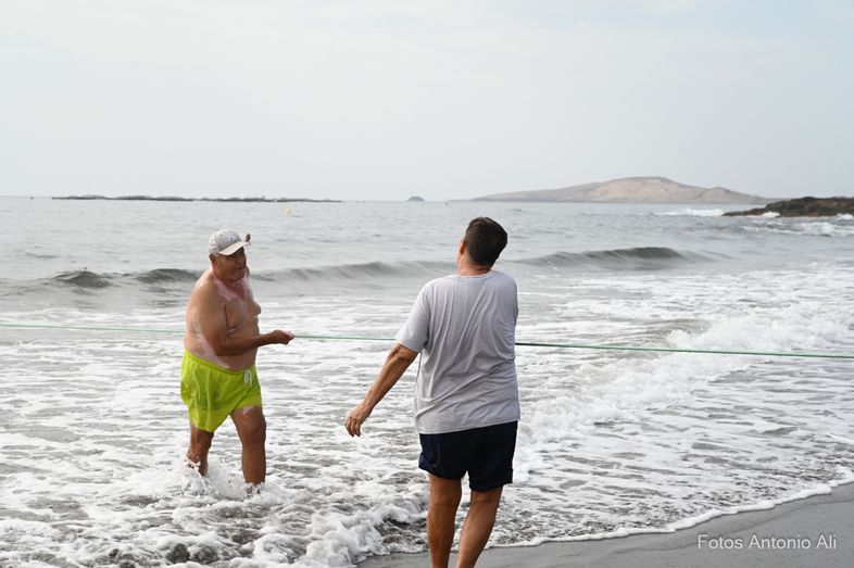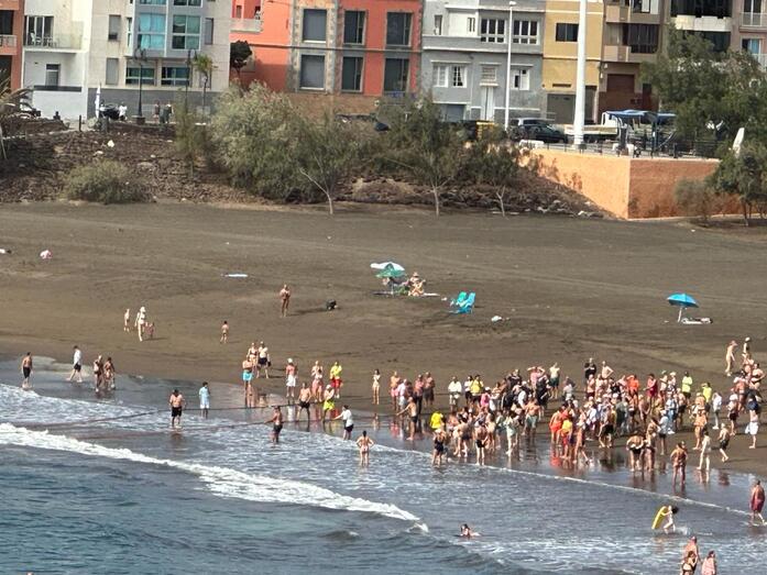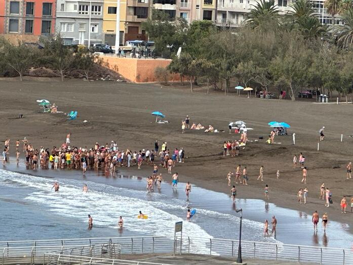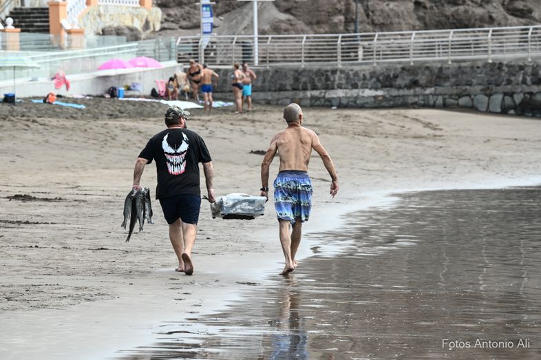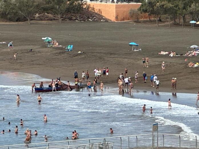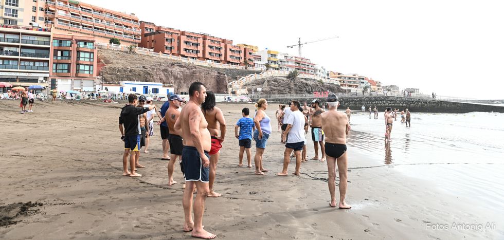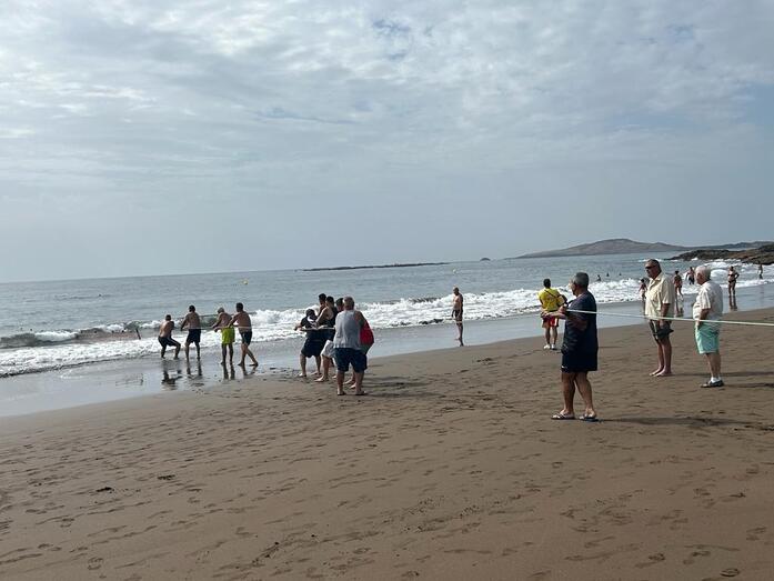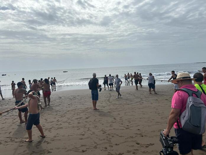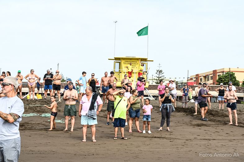 Un nutrido grupo de veraneantes y bañistas se congregaron junto a los marinos que echaron las redes poco después de las 10 de la mañana.