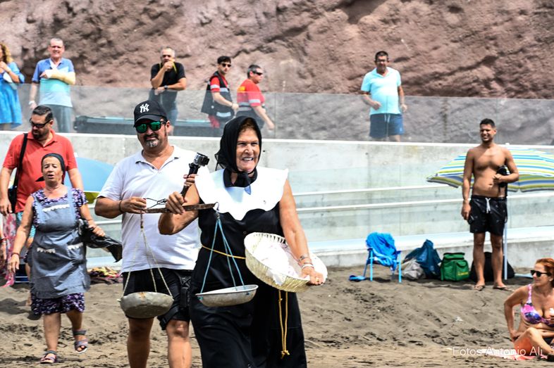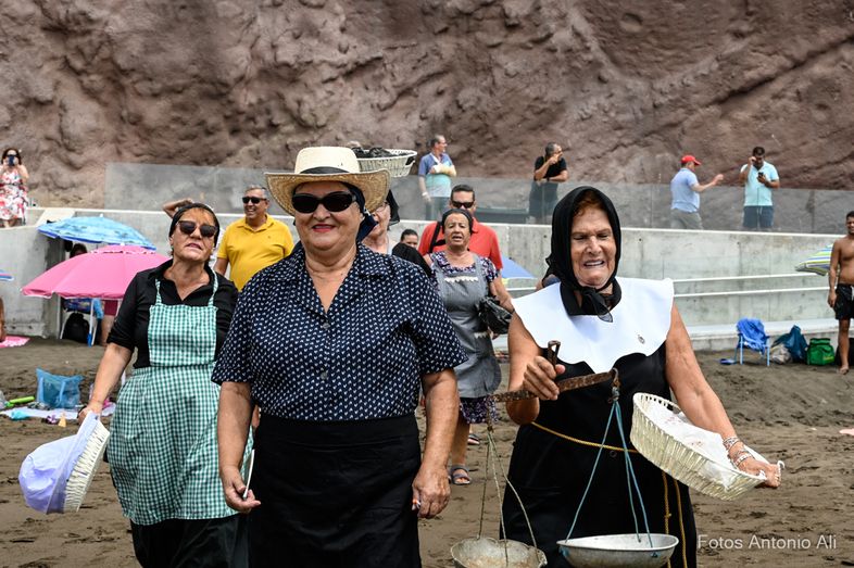 Luego le tocaría el turno a la repreentación de las vendedoras en la playa, y finalmente un asadero popular en el muelle, donde se pudieron degustar especialmente varios centenares de kilos de pescados, aportados gratuitamente por la Cooperativa de Pescadores de Melenara y la empresa Aquacanaria.