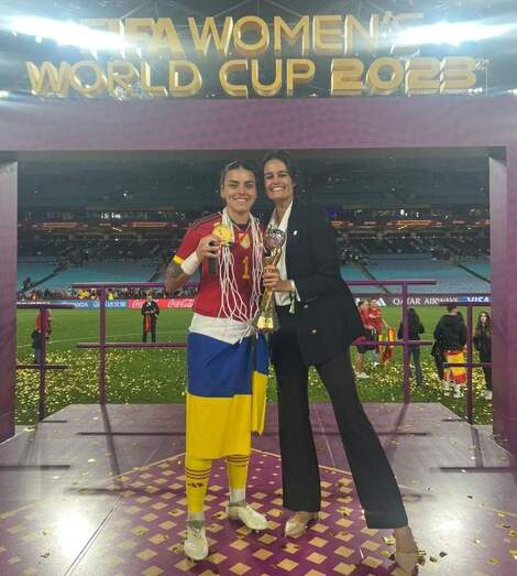 La deportista olímpica canaria y directiva de la Real Federación Española de Fútbol, Thais Henríquez, apoyó este domingo en Sidney a la selección femenina de fútbol de España, que se proclamó campeona del mundo, e inmortalizó este momento junto a la portera teldense Misa Rodríguez, que formó parte del combinado español.