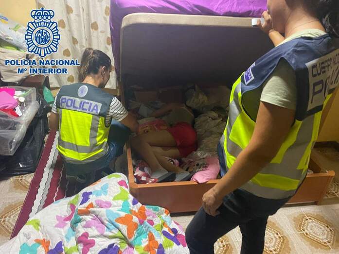 La Policía ha informado en un comunicado de que cuando registraron la vivienda, la menor estaba oculta bajo el arcón que daba soporte al un colchón.