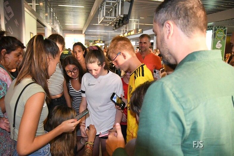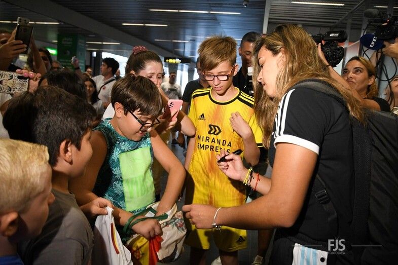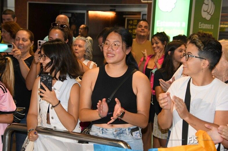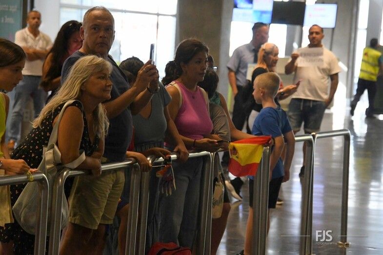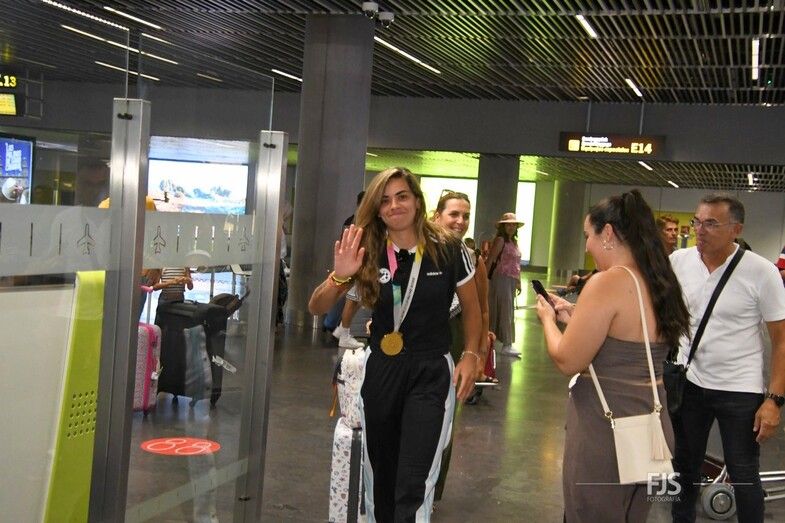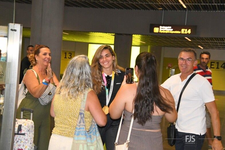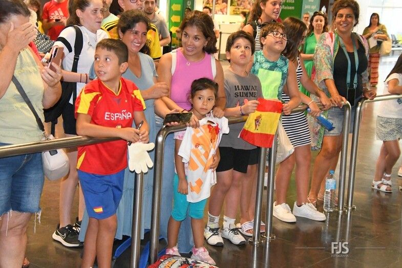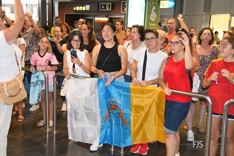 Decenas de personas esperaban a la salida de pasajeros del Aeropuerto de Gran Canaria para recibir entre aplausos y vítores a la teldense Misa Rodríguez, campeona del mundo con la Selección Española femenina de fútbol. Acudió también el alcalde del municipio, Juan Antonio Peña, junto a otros miembros de la Corporación municipal, que agasajaron a la jugadora con palabras de orgullo por el logro conseguido. TA ofrece una galería de imágenes del recibimiento.