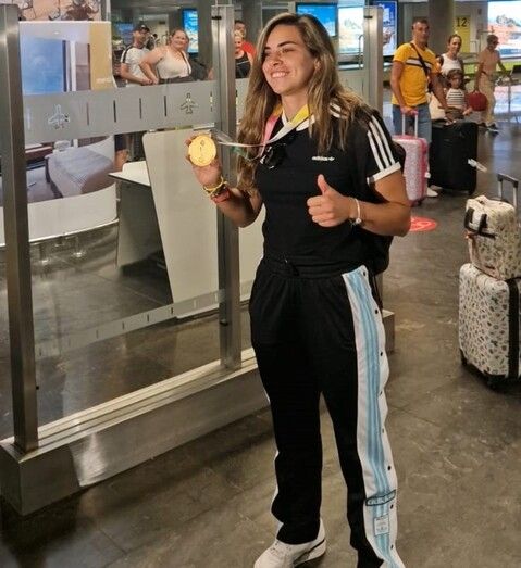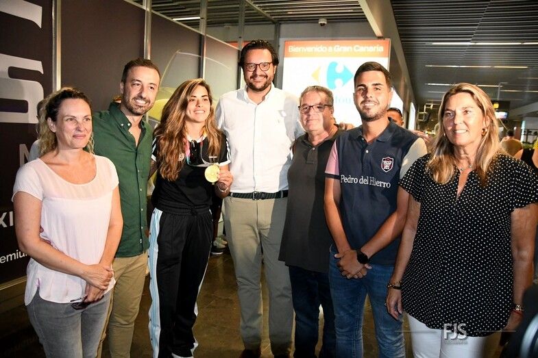 El Ayuntamiento de Telde ha colgado en su Twitter la imagen de la joven con la medalla dándole la bienvenida: “Nuestra estrella ya está en casa. ¡Bienvenida, campeona!”