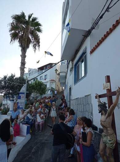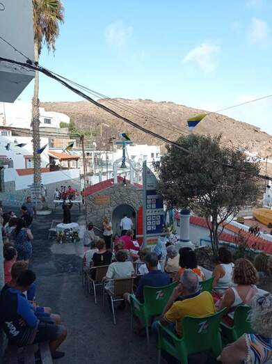 El domingo tuvo marcado carácter festivo en este recoleto pago teldense. A las 13.00 horas se celebró una fiesta de los flotadores y la colchoneta amenizada por Djs Locales y a partir de las 19.00 horas tuvieron lugar los oficios religiosos.