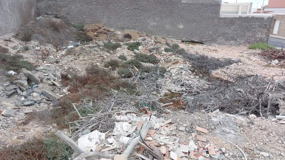 Vecinos de la calle Alhelí, en el sector de La Estrella, denuncian que un solar ubicado en esta vía se ha convertido en un punto habitual donde los incívicos tiran escombros y restos de poda.
