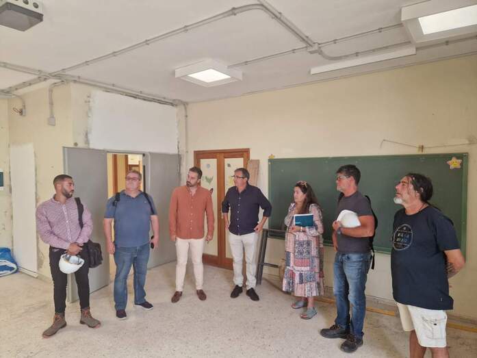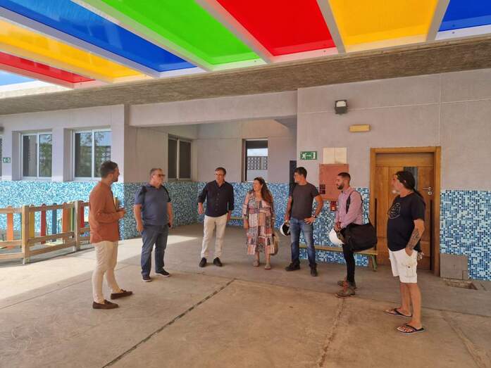 Una comitiva del grupo de Gobierno, encabezada por el alcalde de la ciudad, Juan Antonio Peña; el nuevo concejal de Educación, Juan Pablo Rodríguez; y el responsable del área durante el mandato anterior e impulsor de este proyecto, Juan Francisco Artiles, ha visitado el colegio, con el fin de conocer el estado actual de los trabajos y comprobar que los días que quedan de trabajo no van a afectar al normal desarrollo de las clases, que comenzarán el próximo 11 de septiembre. Junto a ellos estuvieron el director de obra, Santiago Henriquez; la arquitecta municipal, María Jesús Santana; y el representante de Elecnor -empresa adjudicataria-, Antonio Galván.