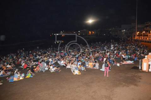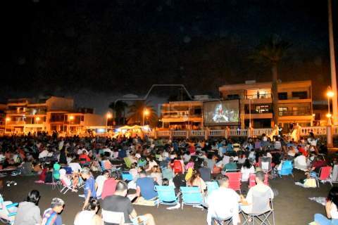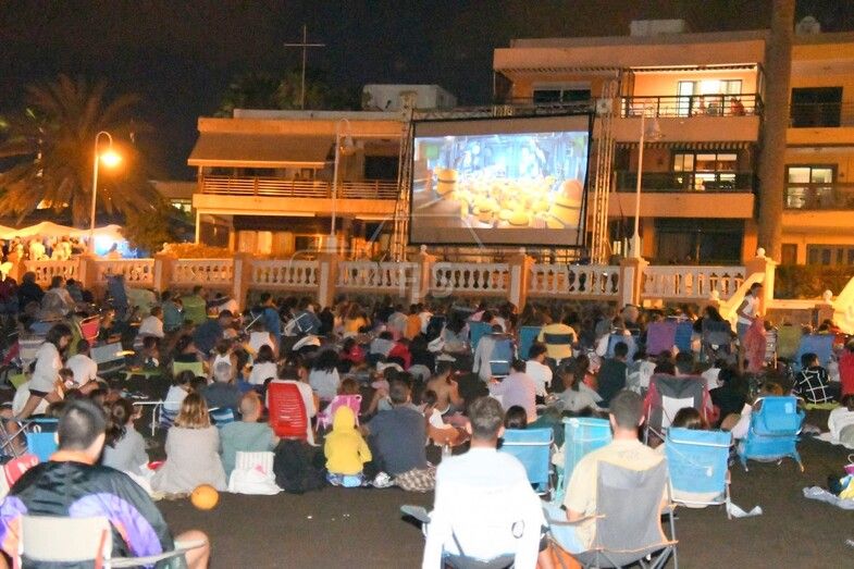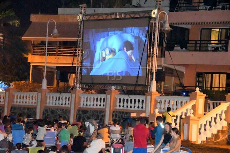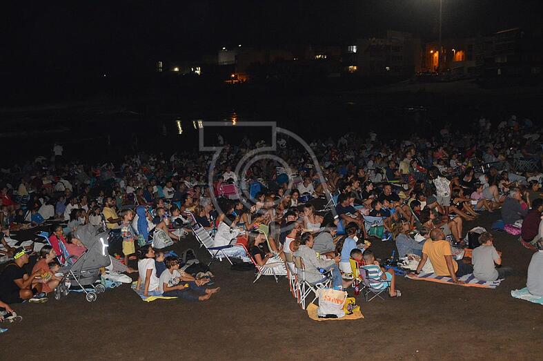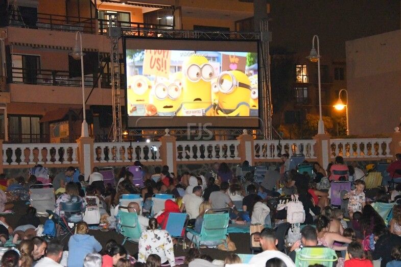 En una jornada de reboso y de luna llena, la playa de Salinetas acogió esta noche con una gran afluencia de  público, más de medio millar de personas, la primera proyección del tradicional cine de verano que exhibió, a partir de las 21.00 horas,  la película infantil Minions el origen de Gru.