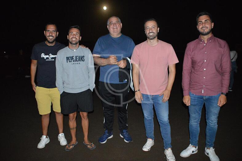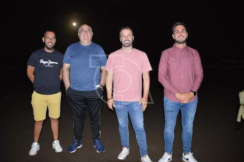 El alcalde Juan Antonio Peña y los ediles Juan Martel y Cristhian Santana disfrutan con el público del espectáculo cinematográfico
