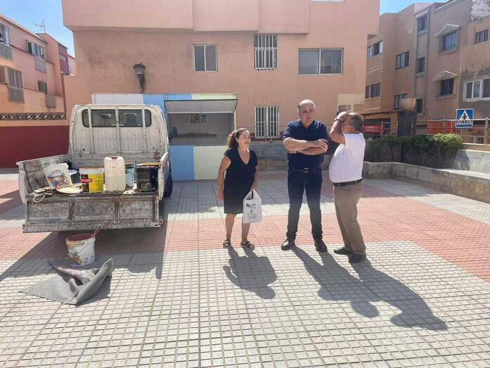 El concejal de Cultura y Servicios Municipales, Juan Martel, ha visitado el barrio costero de La Garita y se ha reunido con la presidenta del Patronato de Fiestas La Sal, Julia Martel, para conocer de primera mano el estado de los preparativos previos al inicio de sus Fiestas Patronales en honor al Sagrado Corazón, que comenzarán este viernes y se extenderán hasta el 10 de septiembre. El Ayuntamiento de Telde realiza estos días trabajos de adecentamiento en la plaza.
