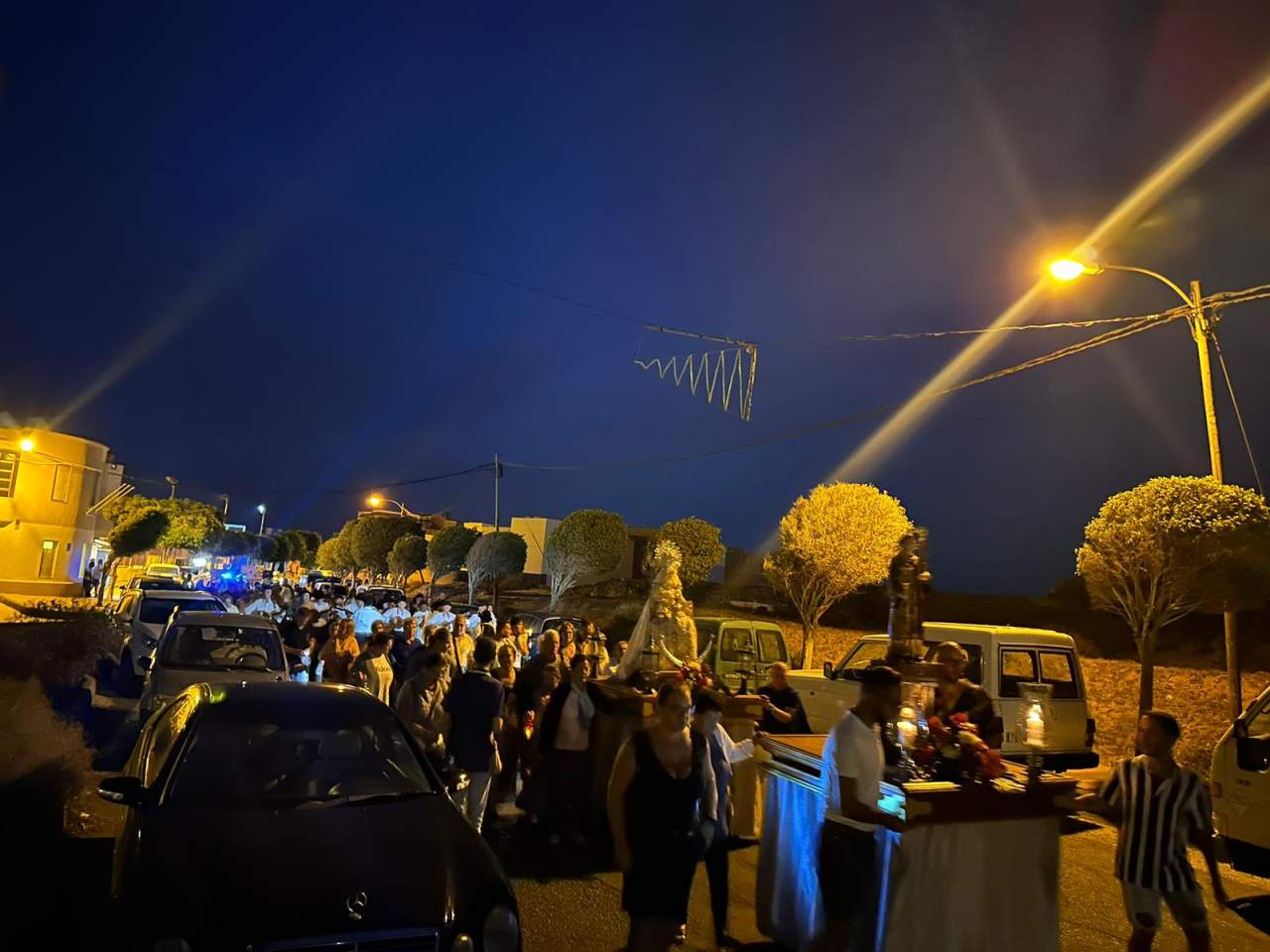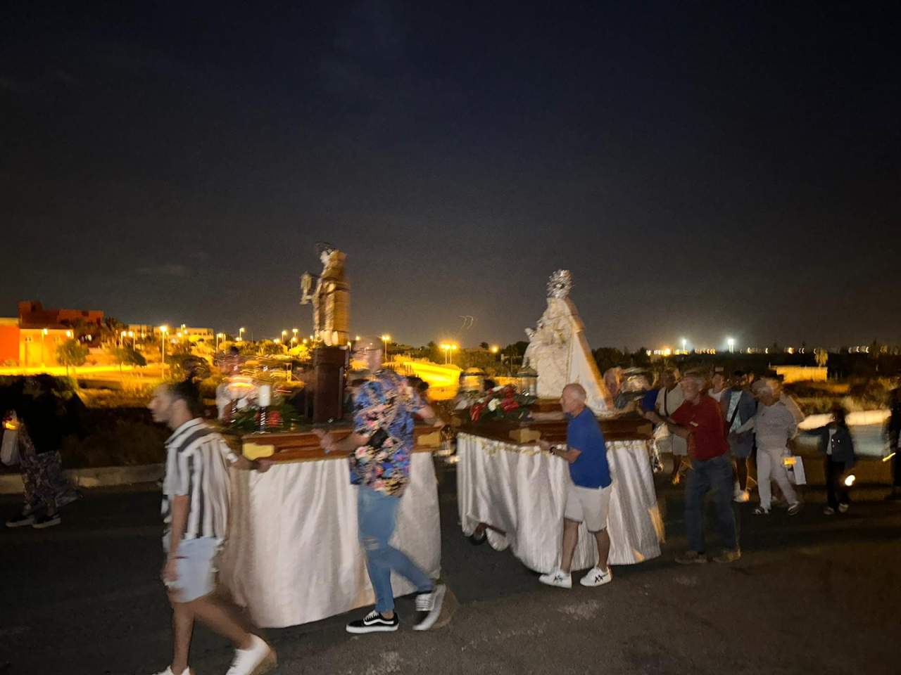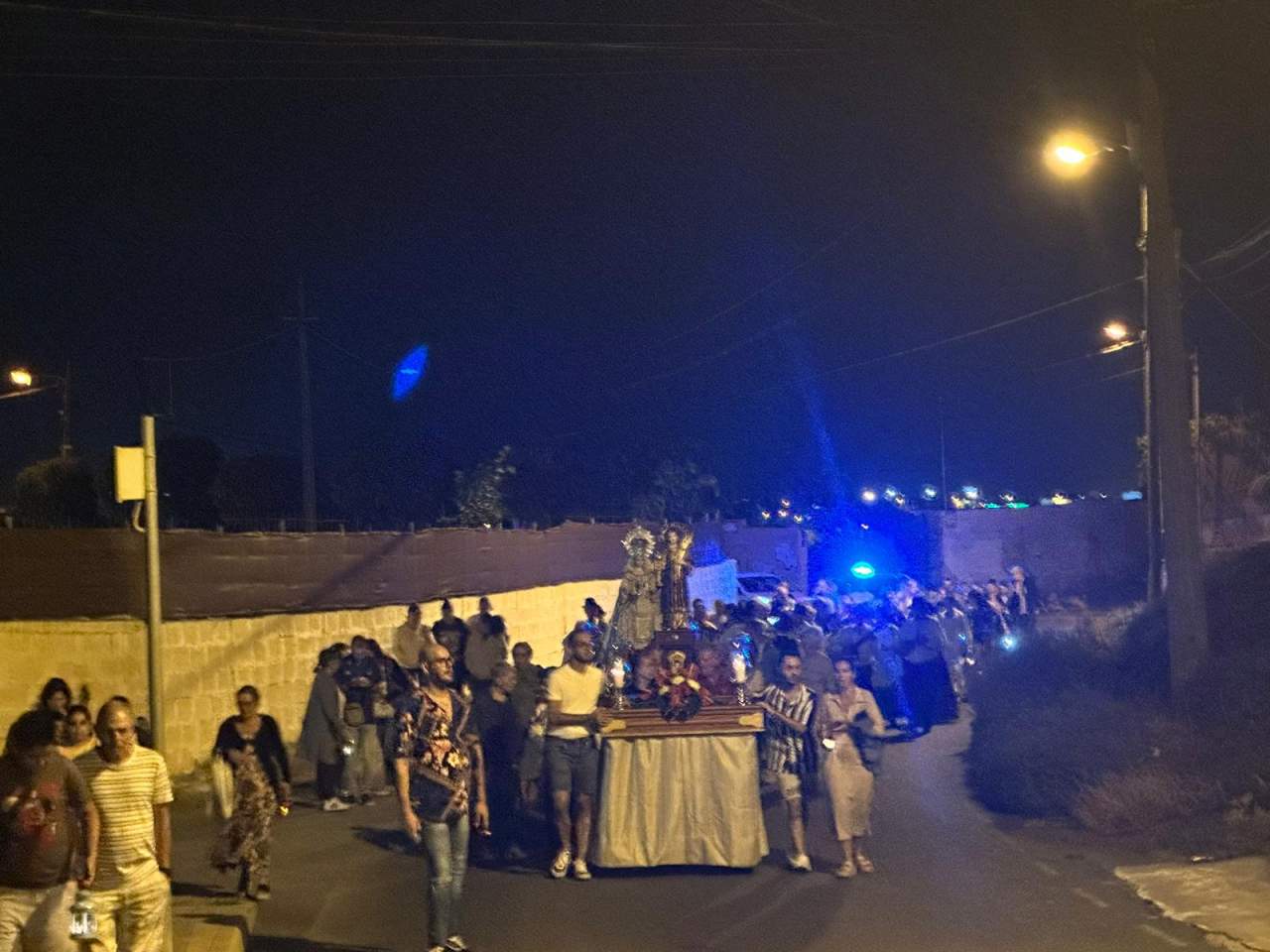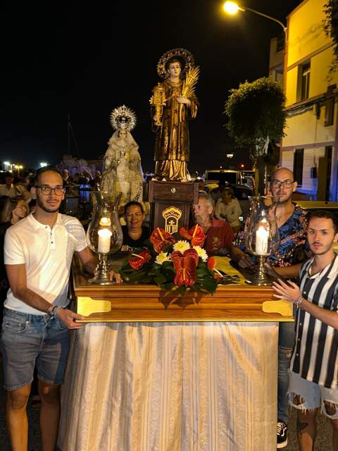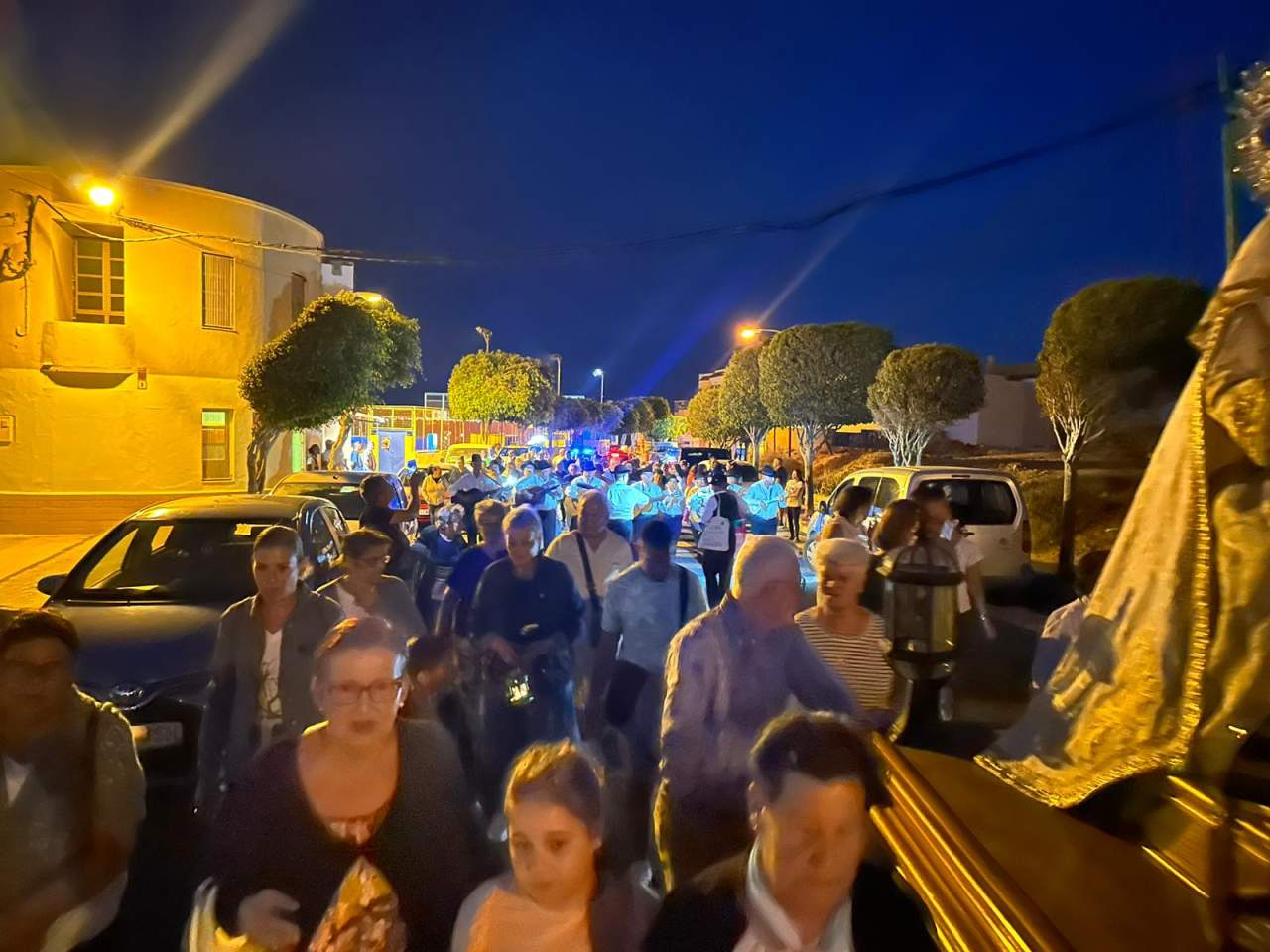 El desfile religioso recorrió las principales vías de este núcleo poblacional junto a los tronos de sus patronos, San Ramón Nonato y la Virgen de la Merced, acompañados por la Banda de Cornetas y Tambores de San José. En el acto participaron decenas de vecinos.