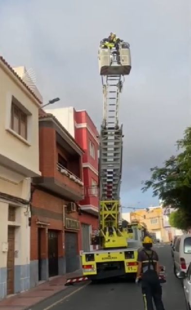 Bomberos del Consorcio de Emergencias de Gran Canaria, adscritos al parque zonal de Telde, fueron movilizados este viernes a primera hora de la mañana ante la caída de cascotes de la fachada de una vivienda de la calle de Esteban Navarro de El Calero.