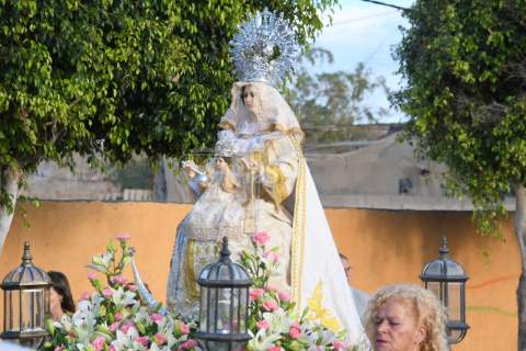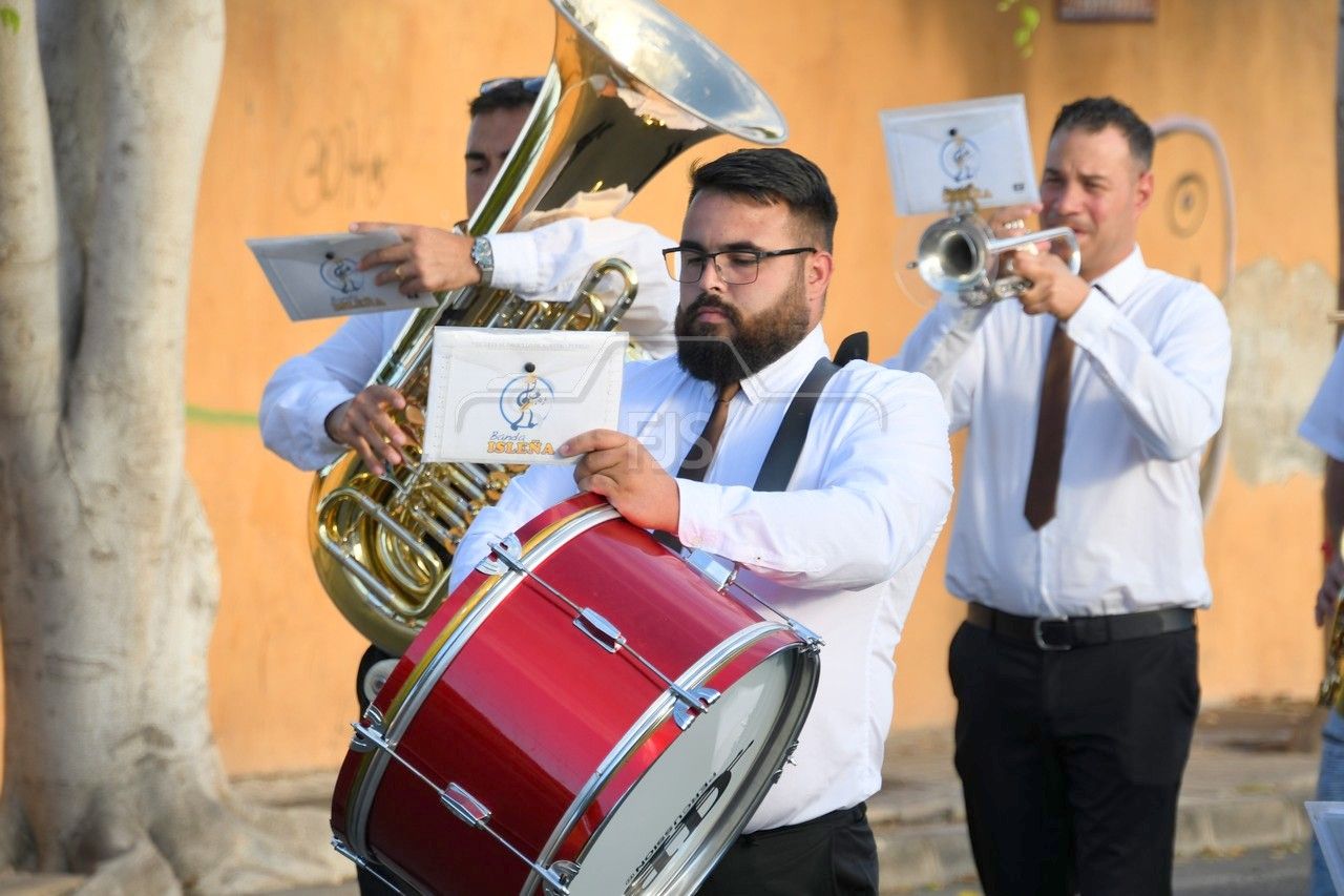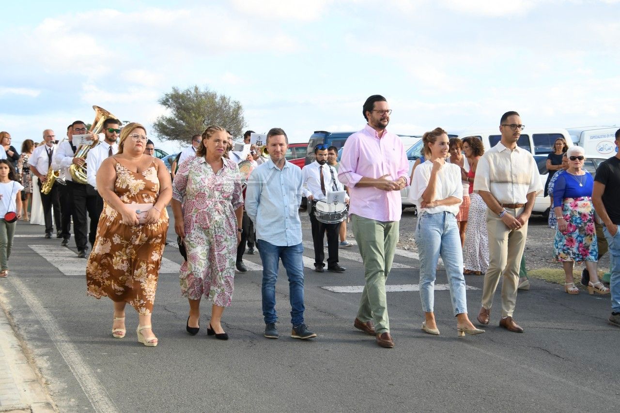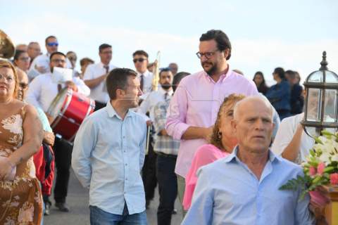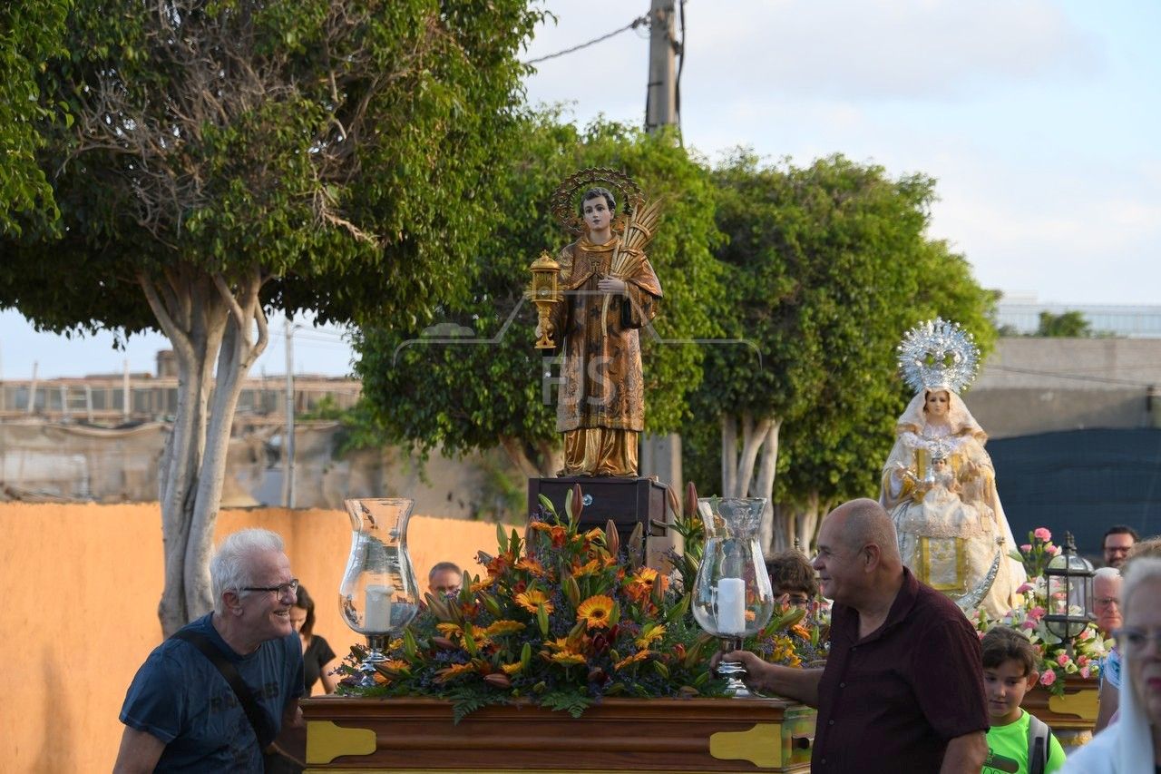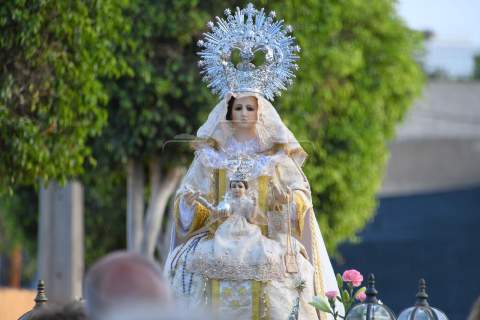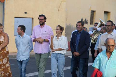A partir de las 19.00 horas, el desfile de los tronos de San Ramón Nonato y la Virgen de la Merced efectuó el recorrido de costumbre desde la calle de Juan de la Cierva hasta la cancha deportiva con el acompañamiento de la Banda Isleña, fieles y autoridades municipales encabezadas por el vicealcalde Sergio Ramos.