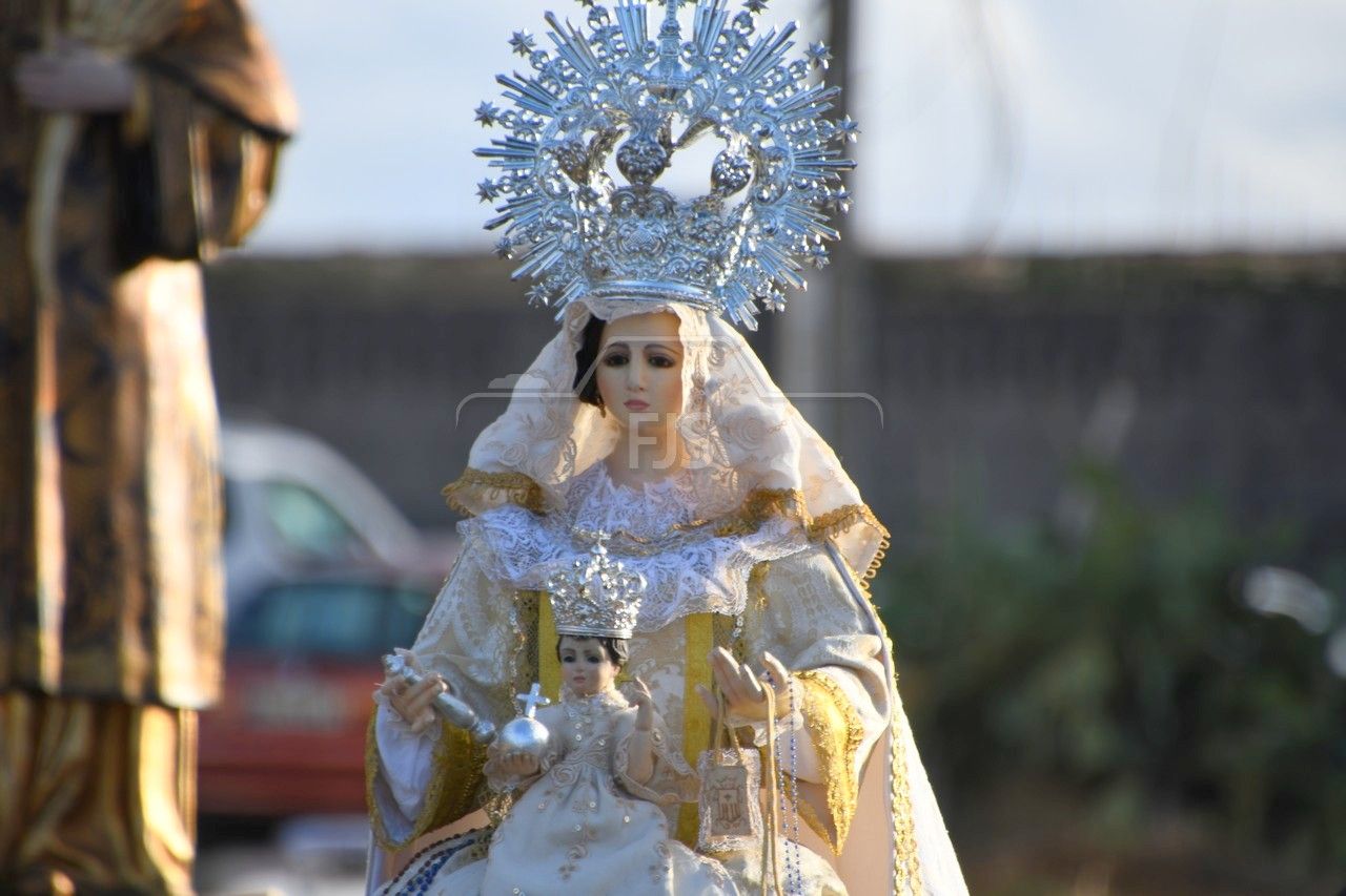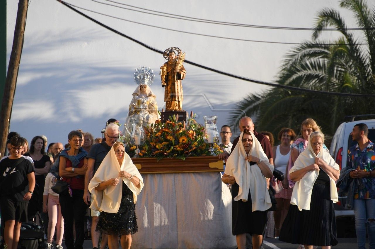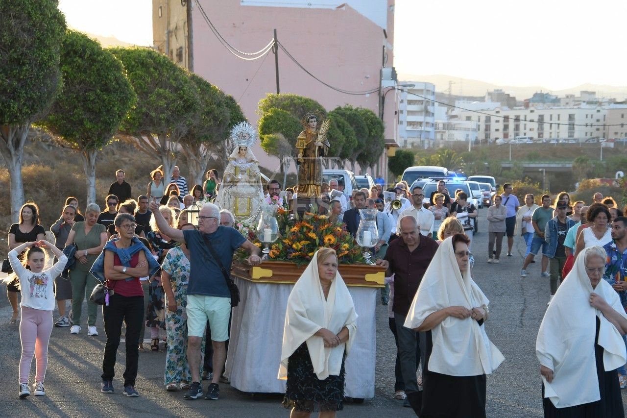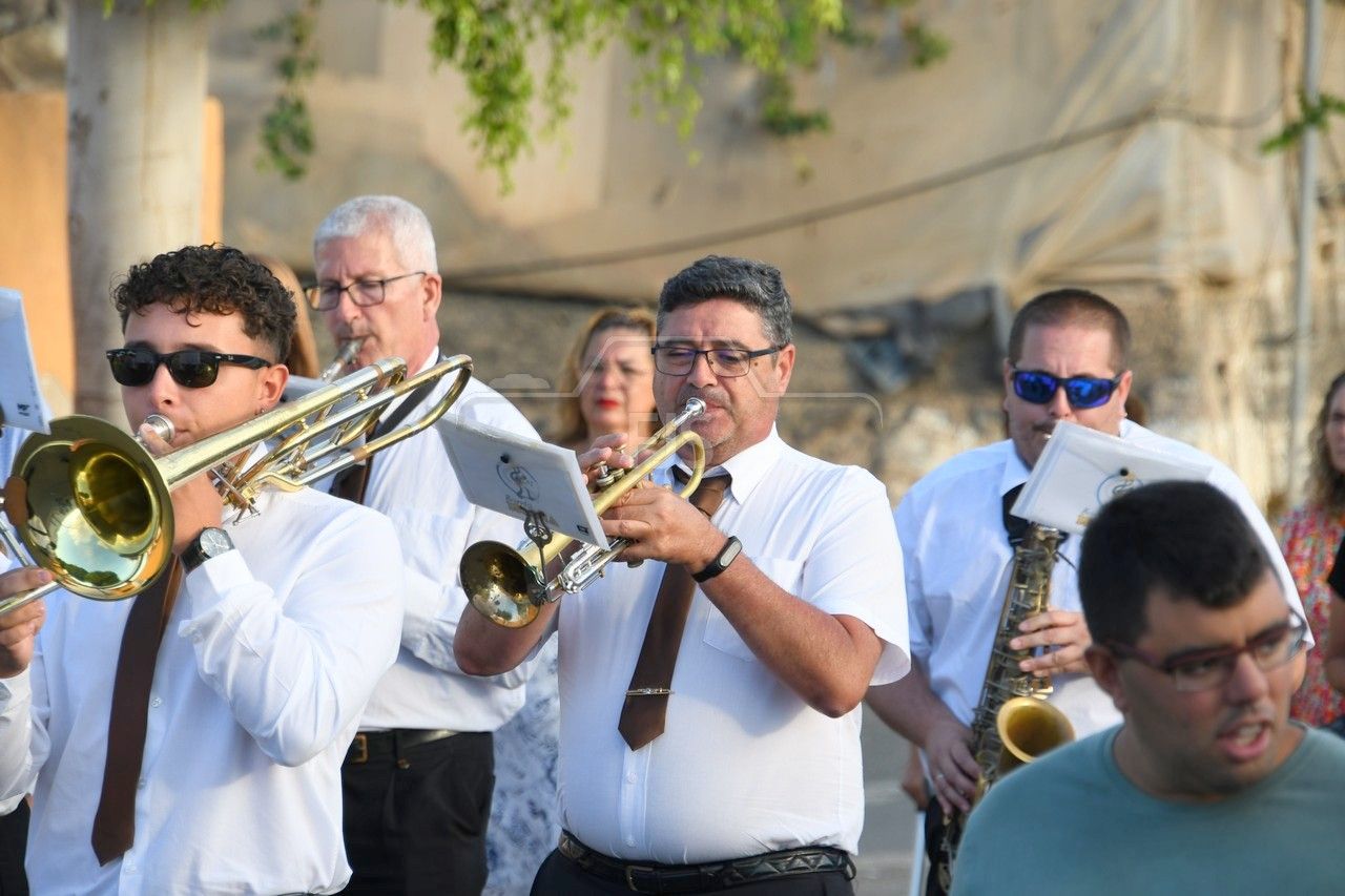 A partir de las 19.00 horas, el desfile de los tronos de San Ramón Nonato y la Virgen de la Merced efectuó el recorrido de costumbre desde la calle de Juan de la Cierva hasta la cancha deportiva con el acompañamiento de la Banda Isleña, fieles y autoridades municipales encabezadas por el vicealcalde Sergio Ramos.
