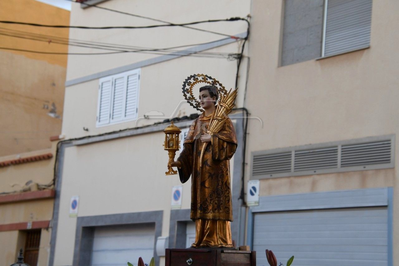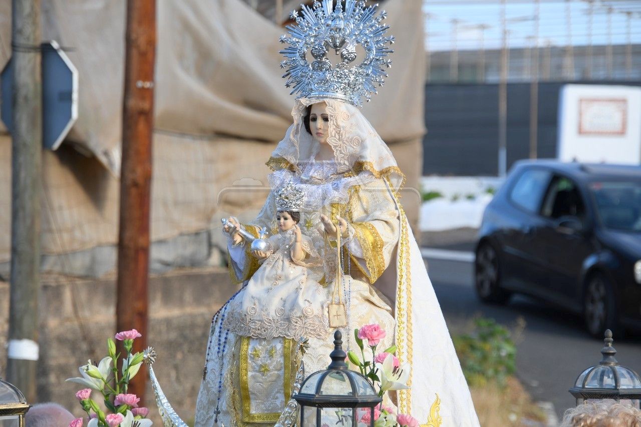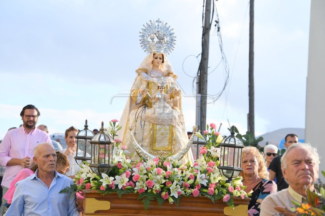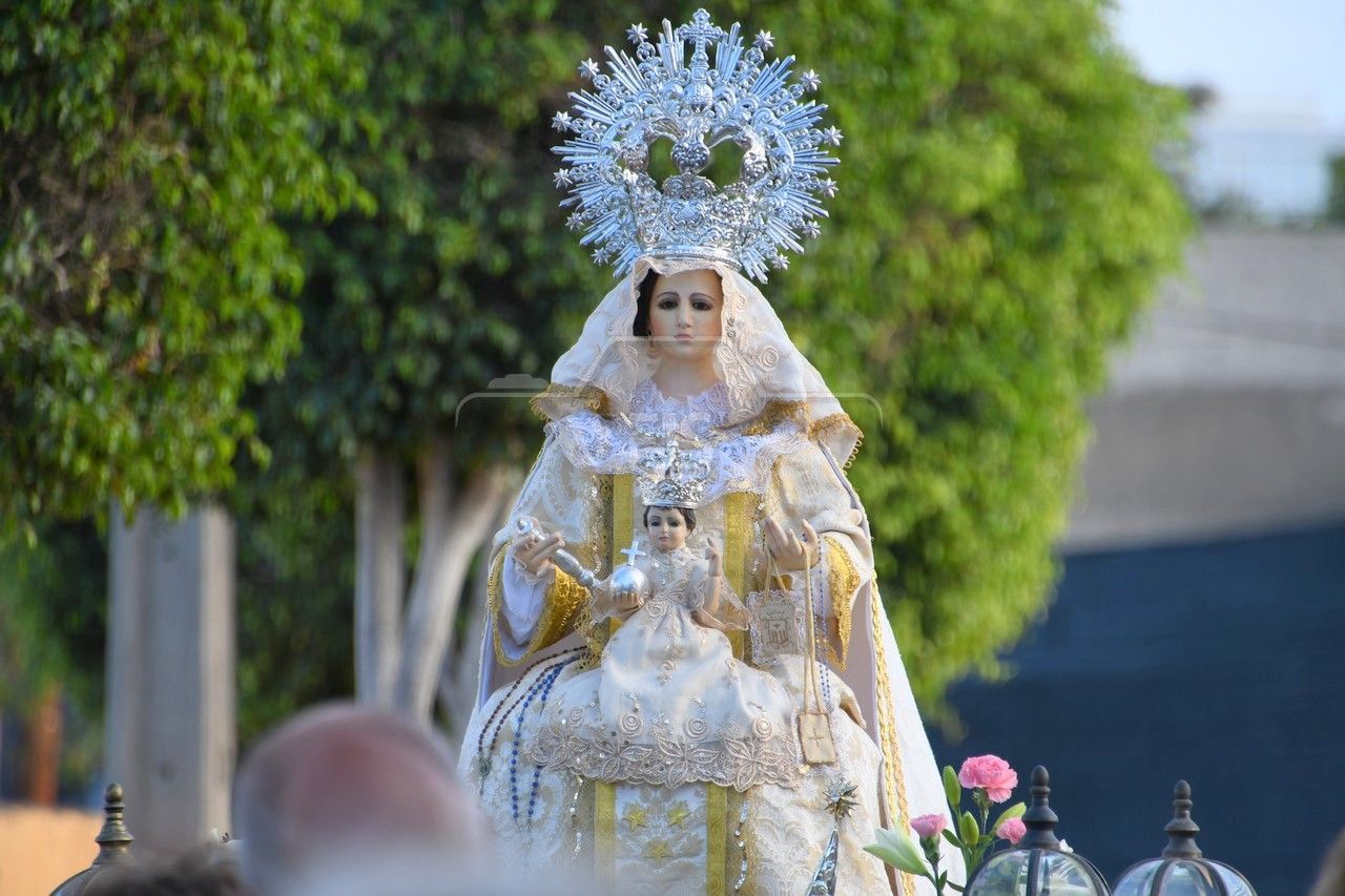 A partir de las 19.00 horas, el desfile de los tronos de San Ramón Nonato y la Virgen de la Merced efectuó el recorrido de costumbre desde la calle de Juan de la Cierva hasta la cancha deportiva con el acompañamiento de la Banda Isleña, fieles y autoridades municipales encabezadas por el vicealcalde Sergio Ramos.