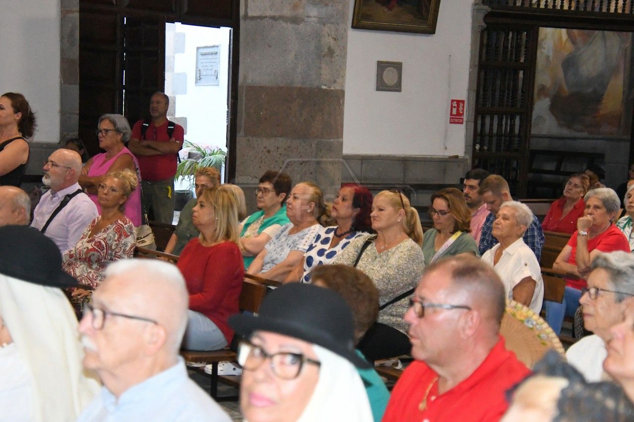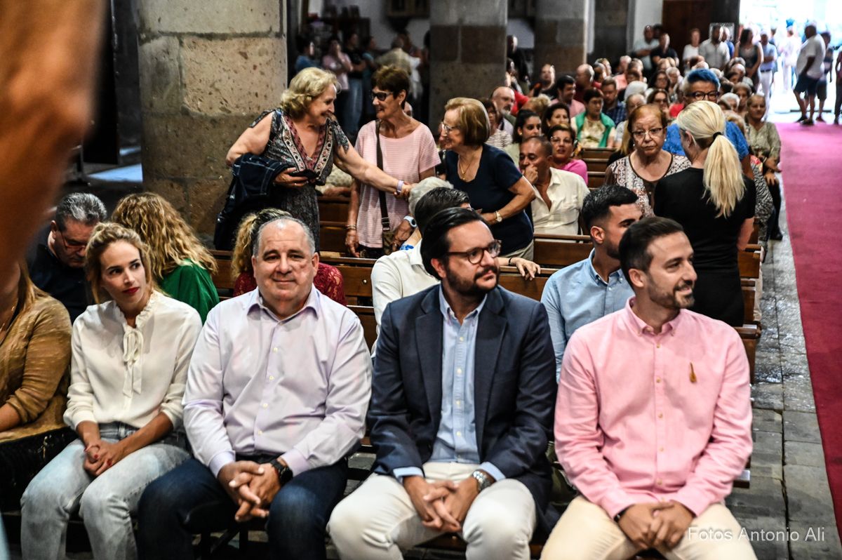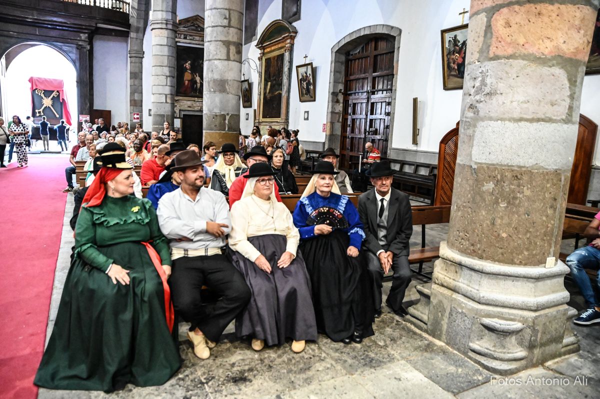 El acto, abierto por el párroco de la Basílica, José María Cabrera, y presidido por el alcalde de Telde, Juan Antonio Peña, y miembros de la corporación municipal, contó con la presencia de miembros de Tajea y Torna y su grupo de baile, agrupación folclórica que también representará a Telde en Teror.