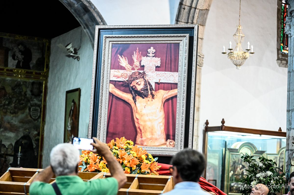 Un gran foto de la imagen del Santo Cristo de Telde presidirá la carreta que el municipio llevará este año a la romería del Pino de Teror que se celebrará el próximo jueves 7 de septiembre en la villa mariana grancanaria. La obra fue presentada hace unos minutos en la Basílica de San Juan con asistencia de cientos de fieles y autoridades públicas encabezadas por el alcalde Juan Antonio Peña. TA avanza un amplio reportaje gráfico del evento.