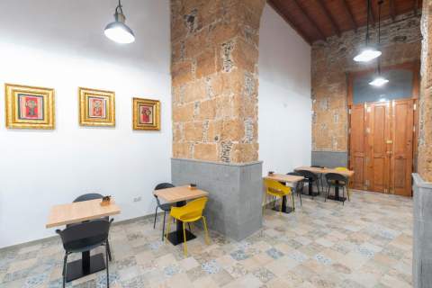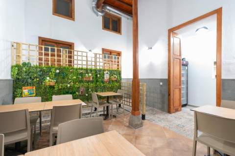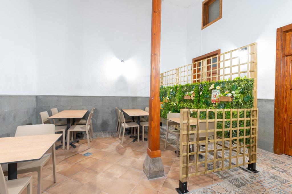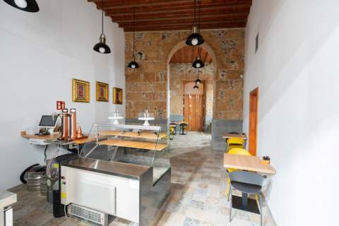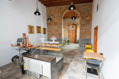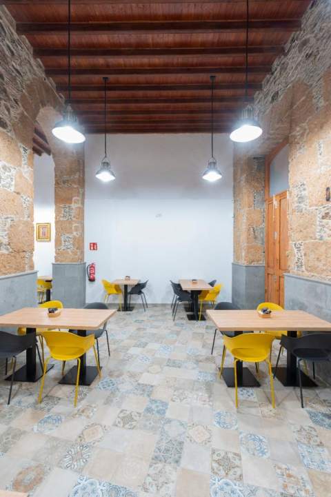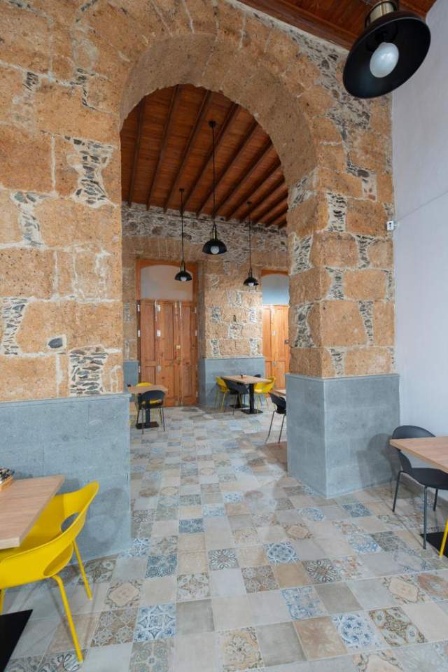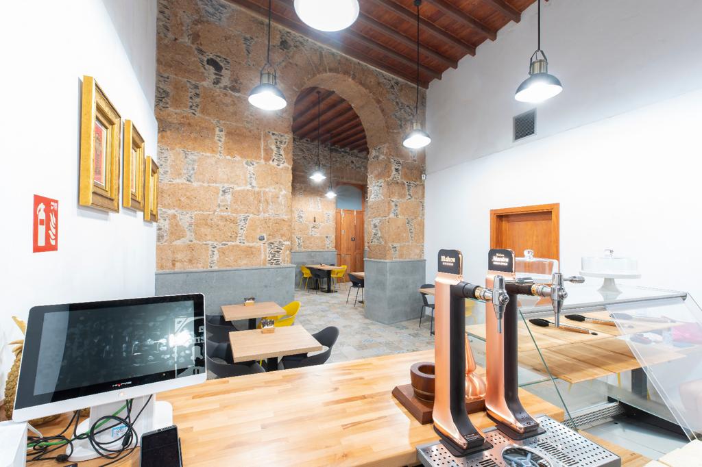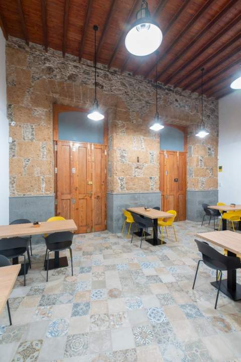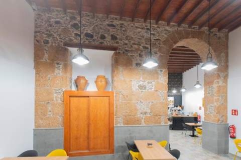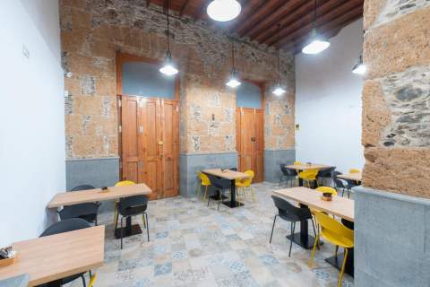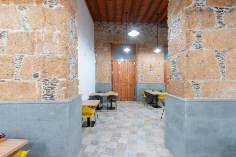 Ha puesto al descubierto las piedras de los viejos muros del inmueble y un espigado y precioso arco que preside y divide dos de las varias estancias del renovado establecimiento. Además se ha recuperado para el uso de la clientela el patio interior de la antigua vivienda. En total, ocupa una superficie de 160 metros cuadrados, contando con una espaciosa cocina a la vista de los usuarios.