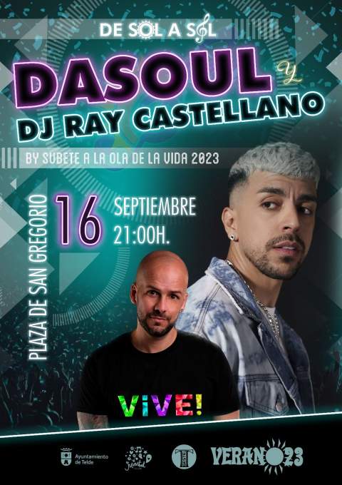 El Gobierno de Telde confirma a Dj Ray Castellano como segundo artista que subirá sobre el escenario de De Sol a Sol el próximo sábado 16 de septiembre, a las 21.00 horas. Se trata de un evento musical, enmarcado en la iniciativa Súbete a la ola de la vida, que se desarrollará en la plaza de San Gregorio y en el que también participará el cantante teldense Dasoul, tal y como anunció hace días el alcalde de la ciudad, Juan Antonio Peña.