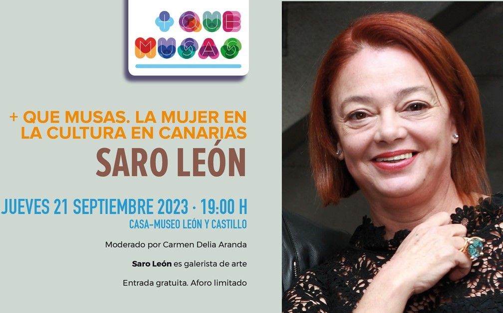La Casa-Museo León y Castillo continúa con el ciclo + que musas. Mujeres de la cultura en Canarias para realizar encuentros con algunas de las protagonistas de la historia cultural de Canarias a lo largo del siglo XX y en las primeras décadas del siglo XXI. En esta ocasión, la protagonista será la galerista de arte Saro León y la actividad estará moderada por la periodista Carmen Delia Aranda.