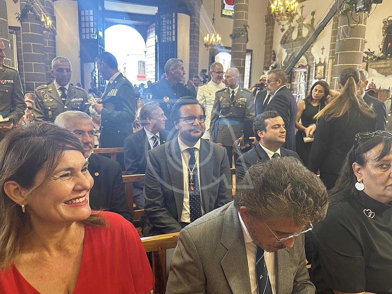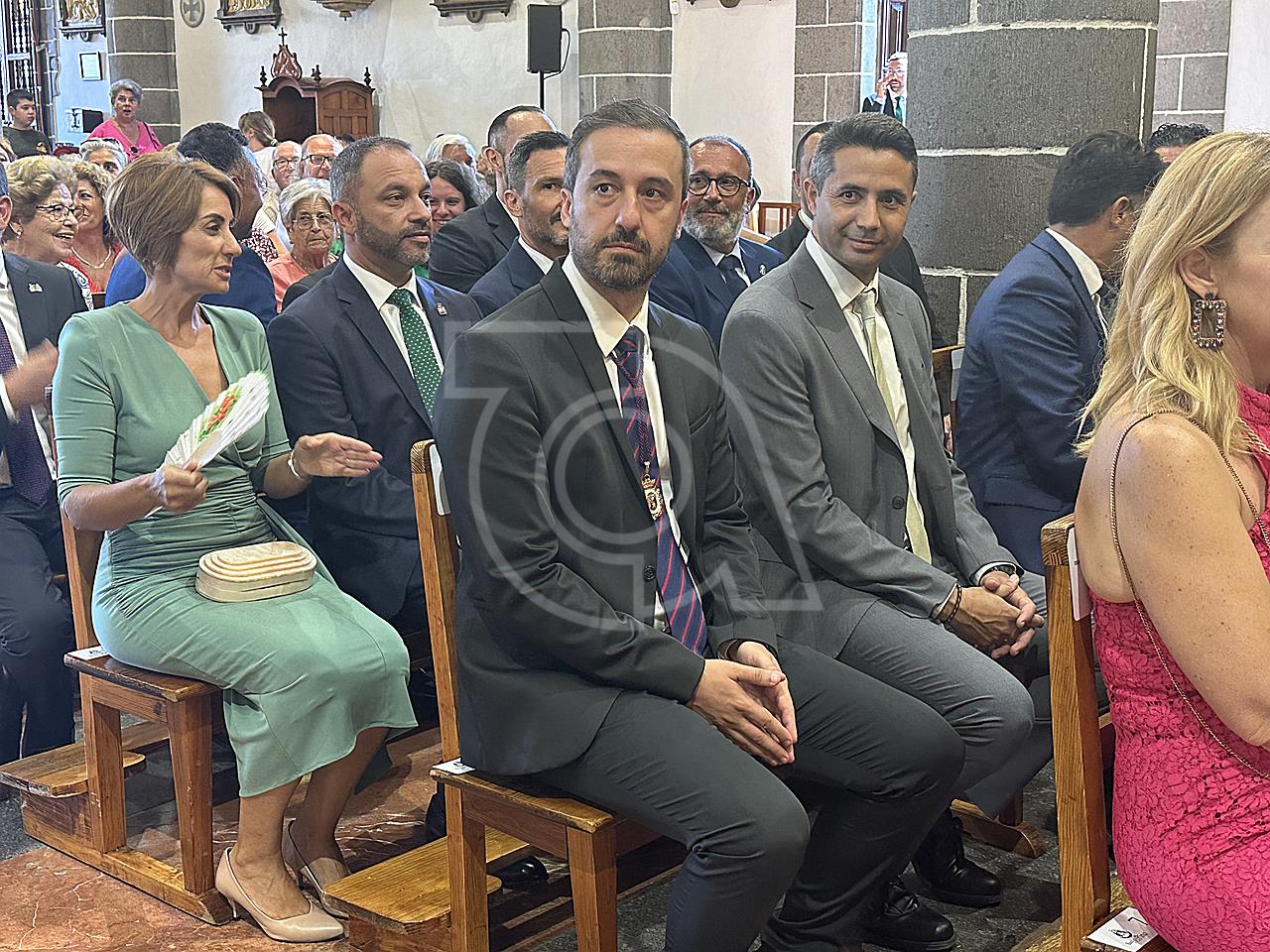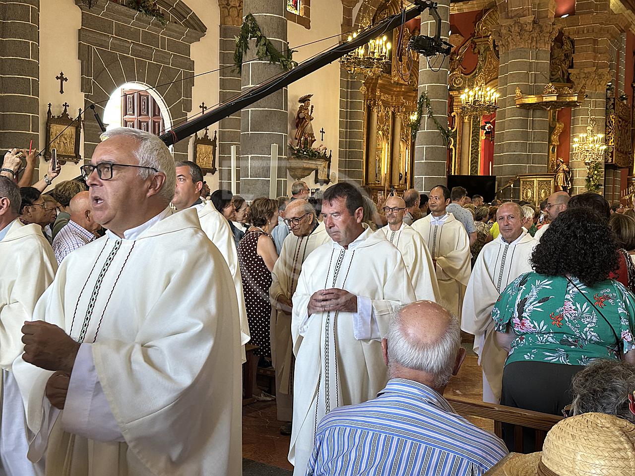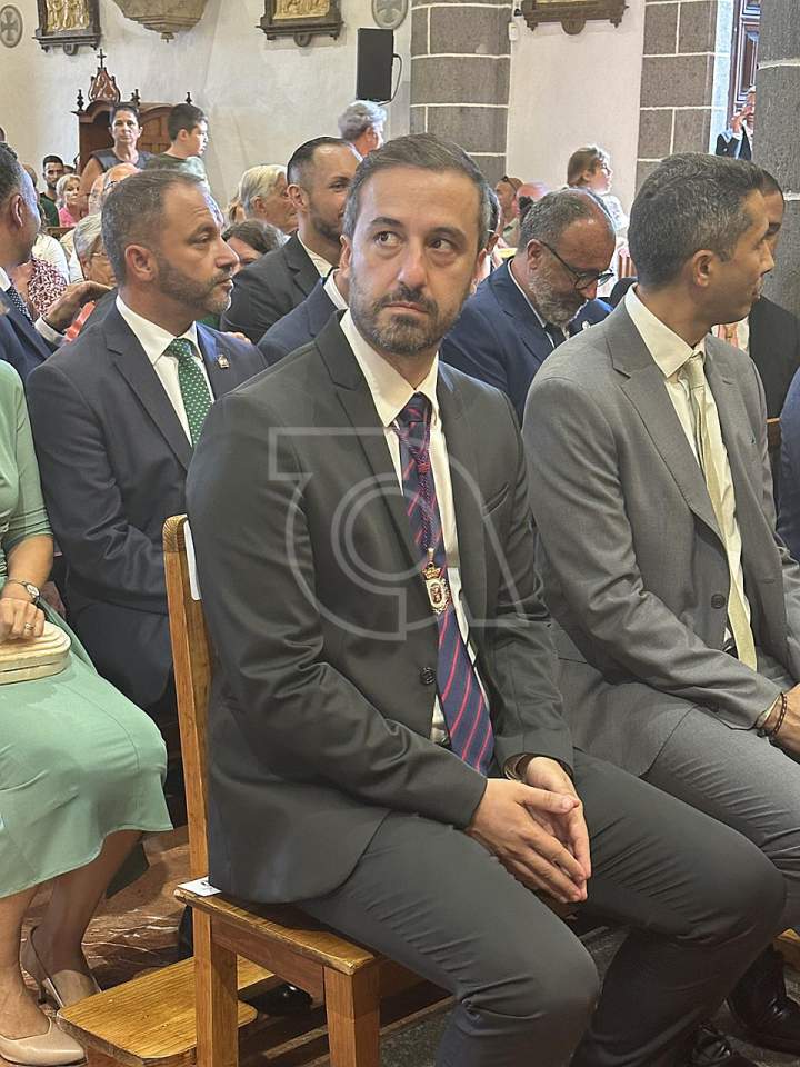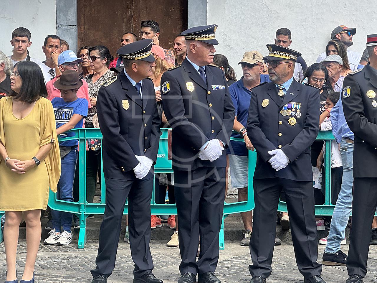 La solemne misa oficiada por el obispo de la Diócesis, Monseñor José Mazuelos, estuvo precedida del acto oficial de recepción del representante de S.M. el rey, el presidente del Gobierno de Canarias, Fernando Clavijo, a las 11.15 horas, al que siguió el desfile militar y, posteriormente, la eucaristía a las 12.00 horas, y la procesión, que mantuvo el recorrido del pasado año pasando por las calles de Iglesia Chica, la Cal, Nueva, Isaac Domínguez y Real de la Plaza.