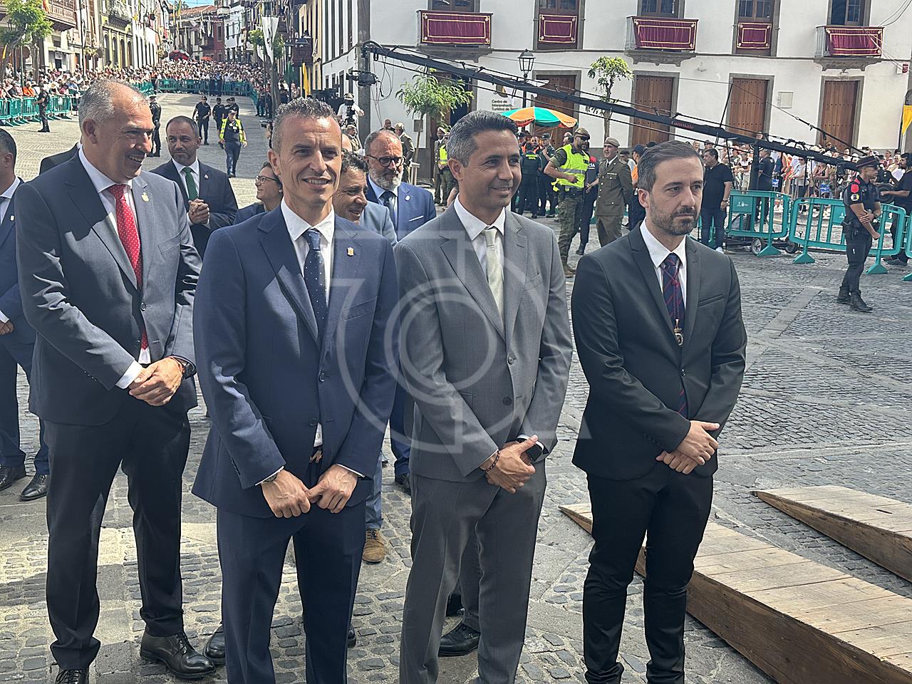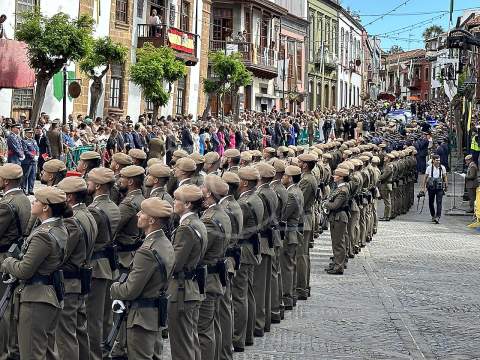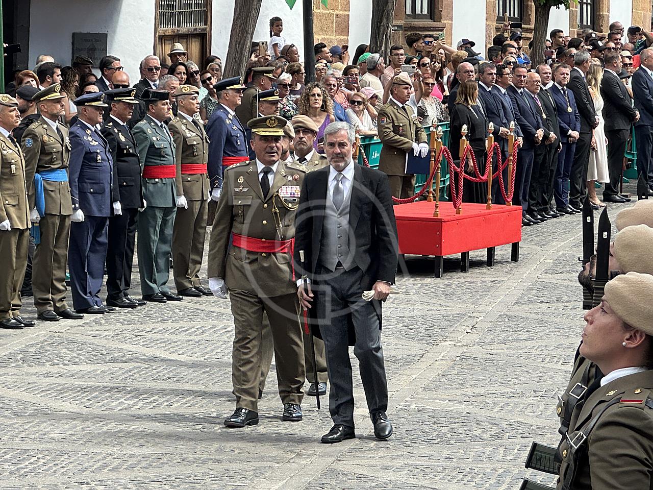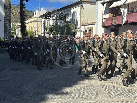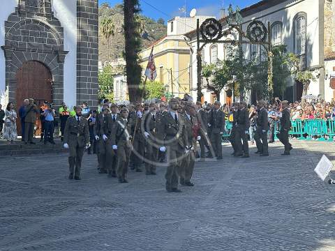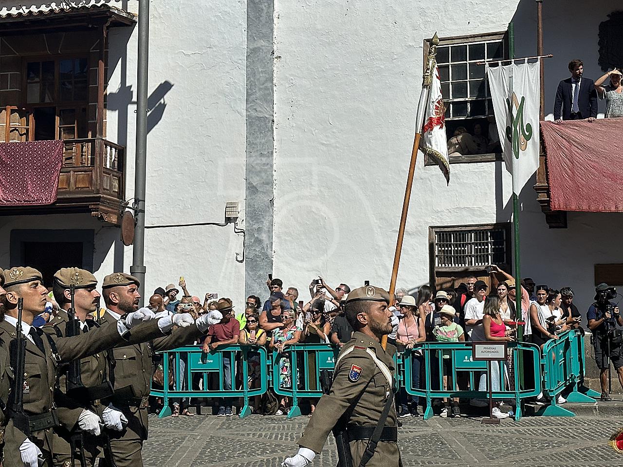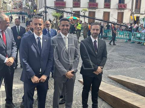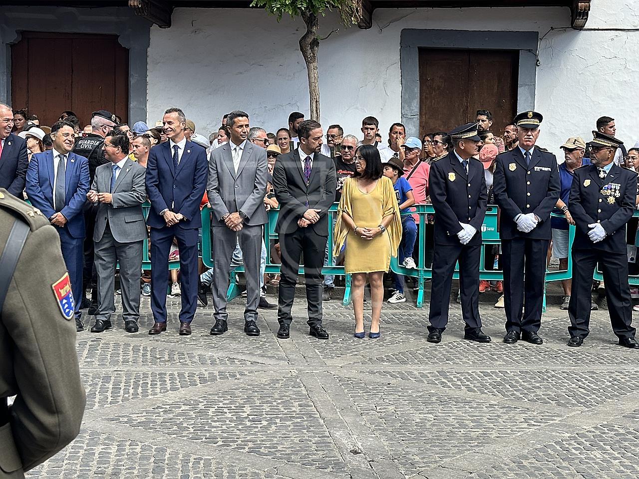 La solemne misa oficiada por el obispo de la Diócesis, Monseñor José Mazuelos, estuvo precedida del acto oficial de recepción del representante de S.M. el rey, el presidente del Gobierno de Canarias, Fernando Clavijo, a las 11.15 horas, al que siguió el desfile militar y, posteriormente, la eucaristía a las 12.00 horas, y la procesión, que mantuvo el recorrido del pasado año pasando por las calles de Iglesia Chica, la Cal, Nueva, Isaac Domínguez y Real de la Plaza.