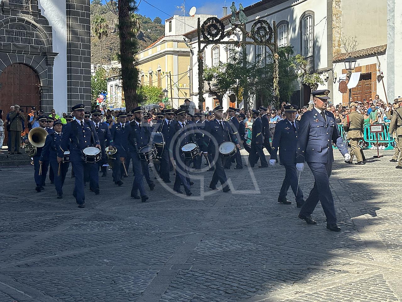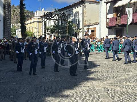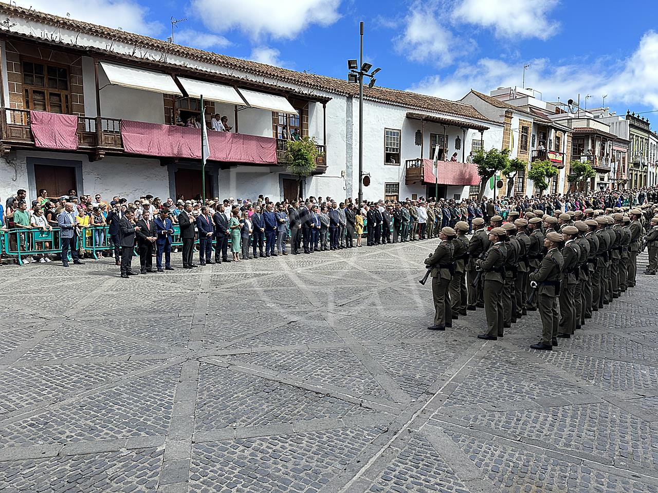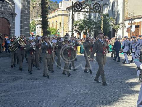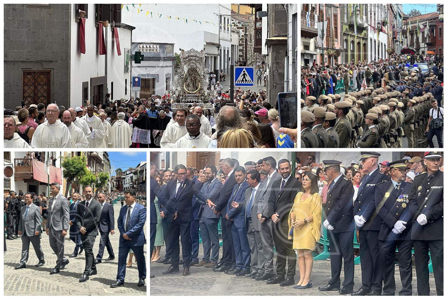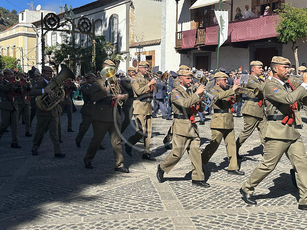 La solemne misa oficiada por el obispo de la Diócesis, Monseñor José Mazuelos, estuvo precedida del acto oficial de recepción del representante de S.M. el rey, el presidente del Gobierno de Canarias, Fernando Clavijo, a las 11.15 horas, al que siguió el desfile militar y, posteriormente, la eucaristía a las 12.00 horas, y la procesión, que mantuvo el recorrido del pasado año pasando por las calles de Iglesia Chica, la Cal, Nueva, Isaac Domínguez y Real de la Plaza.