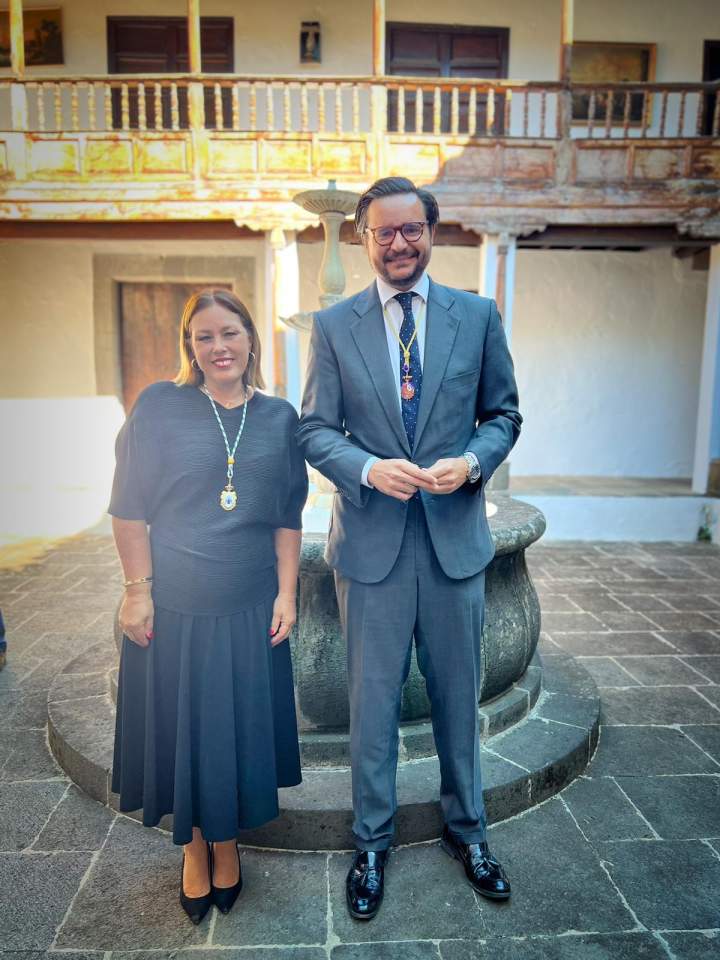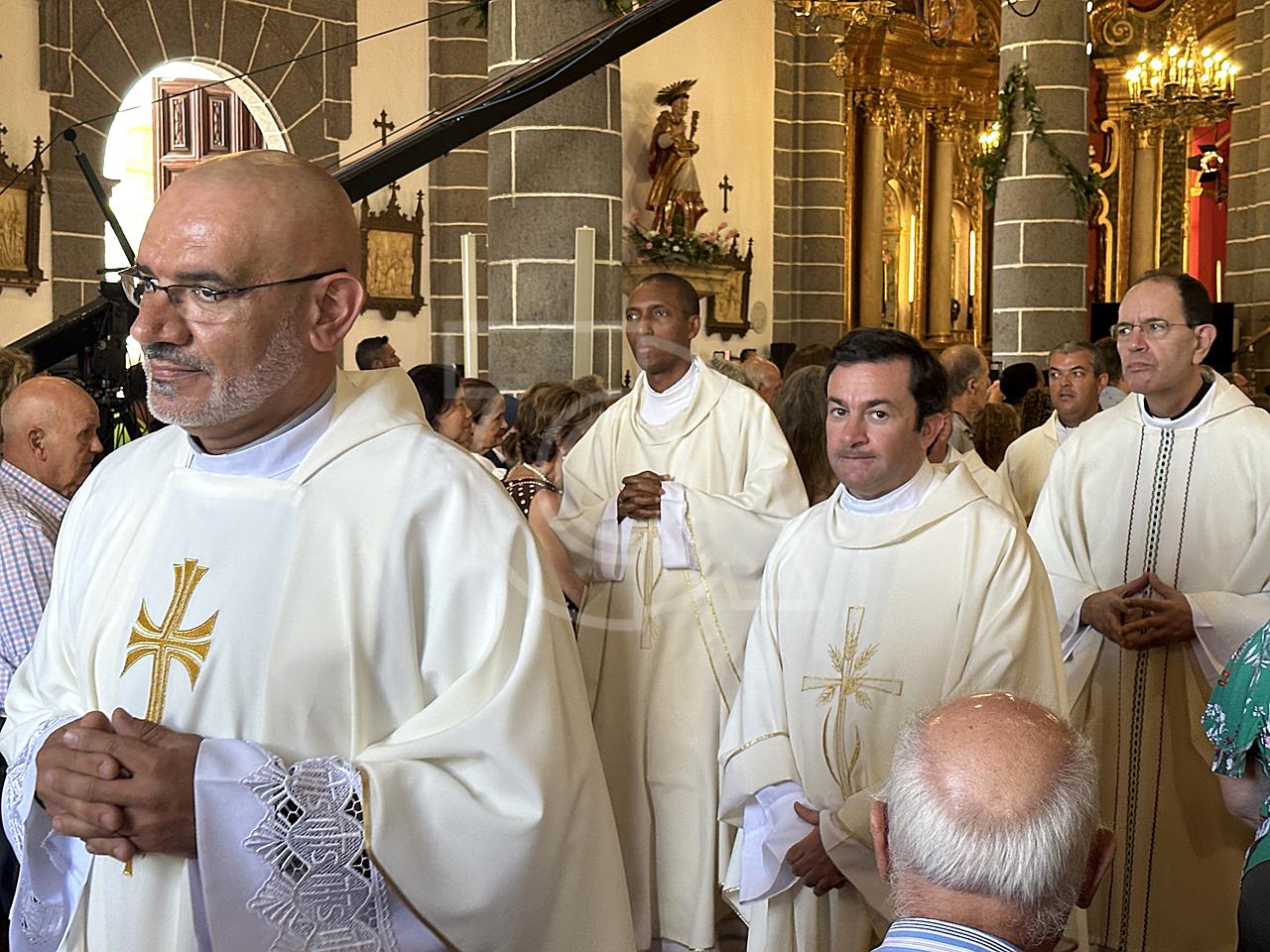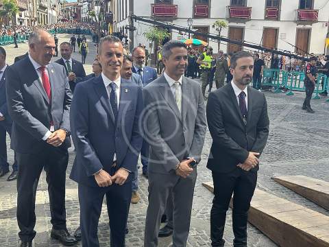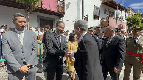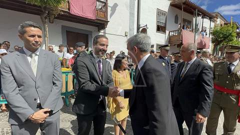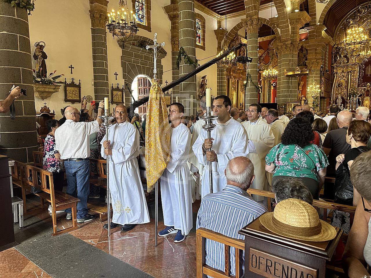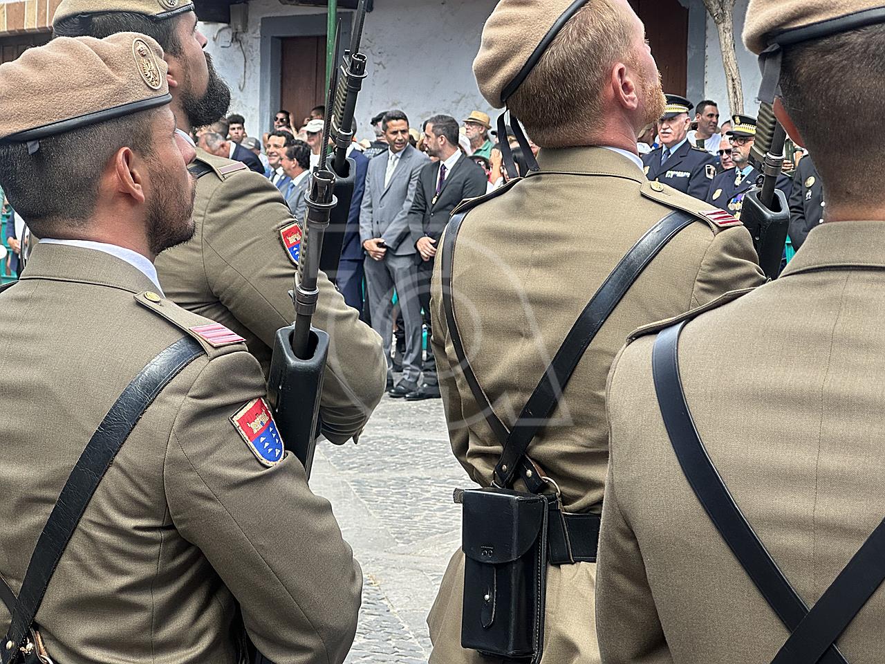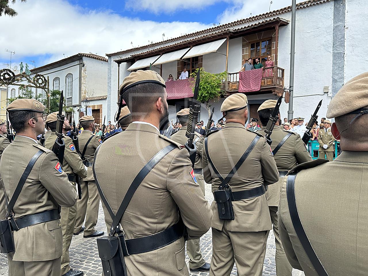 La solemne misa oficiada por el obispo de la Diócesis, Monseñor José Mazuelos, estuvo precedida del acto oficial de recepción del representante de S.M. el rey, el presidente del Gobierno de Canarias, Fernando Clavijo, a las 11.15 horas, al que siguió el desfile militar y, posteriormente, la eucaristía a las 12.00 horas, y la procesión, que mantuvo el recorrido del pasado año pasando por las calles de Iglesia Chica, la Cal, Nueva, Isaac Domínguez y Real de la Plaza.